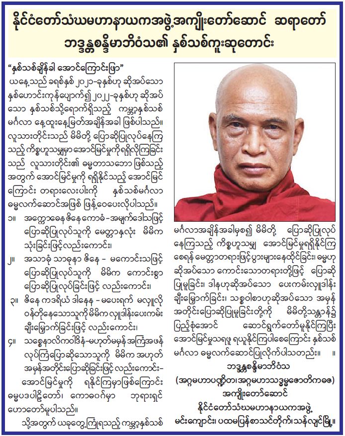 နိုင်ငံတော်သံဃမဟာနာယကအဖွဲ့အကျိုးတော်ဆောင် ဆရာတော် ဘဒ္ဒန္တစန္ဒိမာဘိဝံသ၏ နှစ်သစ်ကူးဆုတောင်း