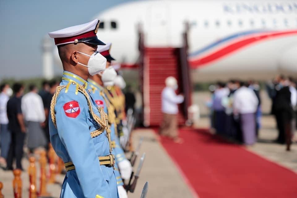 နိုင်ငံတော်စီမံအုပ်ချုပ်ရေးကောင်စီဥက္ကဋ္ဌ နိုင်ငံတော်ဝန်ကြီးချုပ် ဗိုလ်ချုပ်မှူးကြီး မင်းအောင်လှိုင်၏ ဖိတ်ကြားချက်အရ ကမ္ဘောဒီးယားနိုင်ငံဝန်ကြီးချုပ် Samdech Akka Moha Sena Padei Techo HUN SEN သည် အလုပ်သဘောခရီးစဉ်အဖြစ် ယနေ့နံနက်ပိုင်းတွင် နေပြည်တော်သို့ ရောက်ရှိသည်။