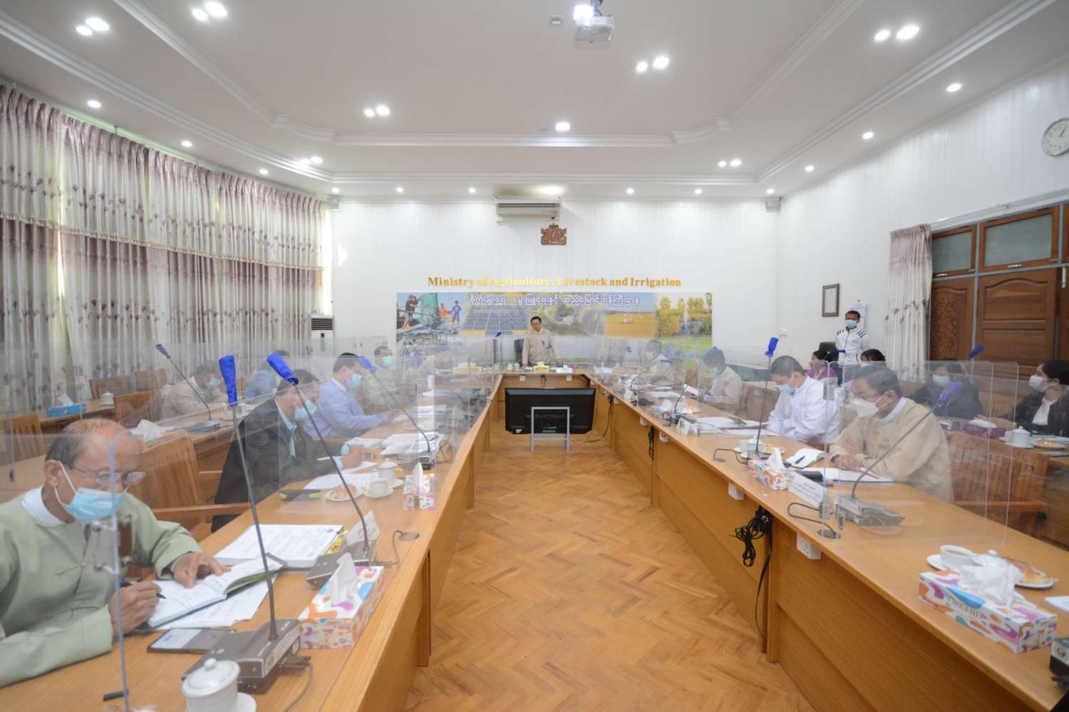 အမျိုးသားအပင်မျိုးသစ်အကာအကွယ်ပေးရေး ဗဟိုကော်မတီ၏ တတိယအကြိမ် အစည်း အဝေးကို ယနေ့မွန်းလွဲပိုင်းက နေပြည်တော် ရုံးအမှတ်(၁၅) စိုက်ပျိုးရေး၊ မွေးမြူရေးနှင့် ဆည်မြောင်းဝန်ကြီးဌာန ပြည်ထောင်စုဝန်ကြီးရုံး အစည်းအဝေးခန်းမ၌ ကျင်းပရာ အစည်း အဝေးသို့ အမျိုးသားအပင်မျိုးသစ်အကာအကွယ်ပေးရေး ဆိုင်ရာဗဟို ကော်မတီဥက္ကဌ၊ ဒုတိယဝန်ကြီး ဒေါက်တာအောင်ကြီးနှင့် ဗဟိုကော်မတီဝင်များစုံညီစွာ တက်ရောက် ဆွေးနွေးကြသည်။
