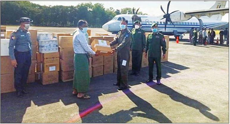 ကိုဗစ်-၁၉ ရောဂါ ဓာတ်ခွဲအတည်ပြုပိုးတွေ့ လူနာများနှင့် သီးသန့်စောင့် ကြည့်ရမည့်သူများအား တပ်မတော်ဆေးရုံများ၊ ပြည်သူ့ဆေးရုံများ၊ ကျန်းမာရေး ဌာနများနှင့် ကိုဗစ်စင်တာများတွင် ကျန်းမာရေးစောင့်ရှောက်ပေးခြင်းနှင့် ပြည်နယ်နှင့်တိုင်းဒေသကြီးအသီးသီး၌ ကိုဗစ်-၁၉ ရောဂါ ကာကွယ်ဆေးထိုးခြင်း လုပ်ငန်းများကို တပ်မတော်သားဆရာဝန်များ၊ ကျန်းမာရေးဝန်ထမ်းများ၊ လူမှုရေးအသင်း အဖွဲ့များပူးပေါင်း၍ အင်တိုက်အားတိုက်ဆောင်ရွက်ပေးလျက်ရှိရာ ၎င်းလုပ်ငန်း များတွင် အထောက်အကူဖြစ်စေရန်အတွက် ကာကွယ်ဆေးများကို တိုင်းဒေသကြီးနှင့်ပြည်နယ် အသီးသီးသို့ သတ်မှတ်အအေးလမ်းကြောင်း စံချိန်စံညွှန်းများအတိုင်း တပ်မတော်(လေ)မှ လေယာဉ်များ၊ Cold Chain Delivery Logistics မော်တော်ယာဉ်ကြီးများဖြင့် ပို့ဆောင်ဖြန့်ဖြူးပေးလျက် ရှိသည်။