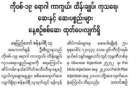 ကိုဗစ် − ၁၉ ရောဂါ ကာကွယ်၊ ထိန်းချုပ်၊ ကုသရေး ဆေးနှင့် ဆေးပစ္စည်းများ နေ့စဉ် စစ်ဆေးထုတ်ပေးလျက်ရှိ