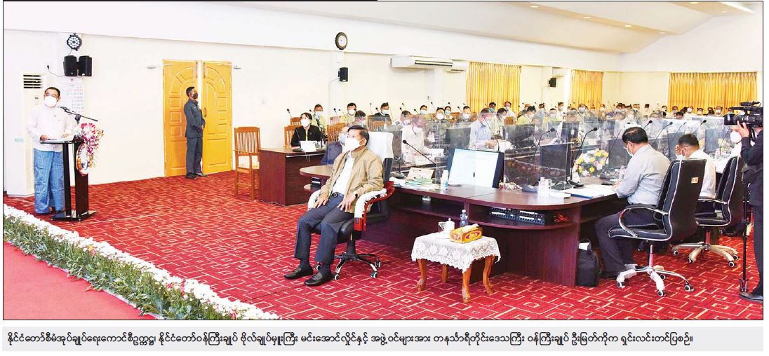 တနင်္သာရီတိုင်းဒေသကြီးအတွင်း လမ်းပန်းဆက်သွယ်မှုများ ကောင်းမွန်ရေးအတွက် လမ်းနှင့် တံတားများကို အဆင့်မြှင့်တင်ဆောင်ရွက်ပေးလျက်ရှိသည့် အခြေအနေများနှင့် ကျေးလက် လမ်းတံတားများကို ဦးစားပေးအနေဖြင့် ဆောင်ရွက်ပေးလျက်ရှိသည့် အခြေအနေများ၊ ကိုဗစ်-၁၉ ရောဂါ တတိယလှိုင်း ကာလအတွင်း တနင်္သာရီတိုင်းဒေသကြီးအနေဖြင့် ရောဂါ ကူးစက် ဖြစ်ပေါ်ခဲ့မှု အခြေအနေများနှင့် လက်ရှိအချိန်တွင် တစ်နိုင်ငံလုံးအတိုင်းအတာဖြင့် ရောဂါပိုး အတည်ပြုလူနာ တွေ့ရှိမှုနှုန်းကို လျှော့ချနိုင်ခဲ့ပြီးဖြစ်သည့် အခြေအနေများ၊ ကိုဗစ်-၁၉ ရောဂါ စတုတ္ထလှိုင်းဖြစ်ပေါ်မှုကို ကြိုတင်ကာကွယ်နိုင်ရေးအတွက် တစ်နိုင်ငံလုံး အတိုင်းအတာဖြင့် ကာကွယ်ဆေးထိုး လုပ်ငန်းများကို အင်တိုက်အားတိုက် ဆောင်ရွက်လျက်ရှိပြီး တနင်္သာရီ တိုင်းဒေသကြီးအတွင်း ကာကွယ်ဆေးထိုးနှံပြီးစီးမှု အခြေအနေများနှင့် ပတ်သက်၍ ရှင်းလင်းပြောကြားကြသည်။