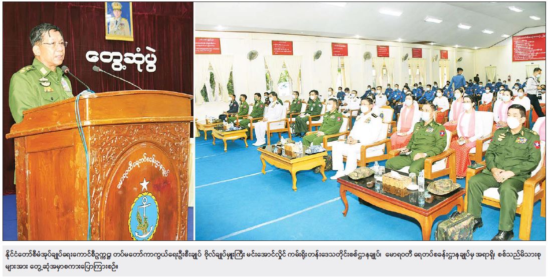 နိုင်ငံတော်စီမံအုပ်ချုပ်ရေးကောင်စီဥက္ကဋ္ဌ၊ တပ်မတော်ကာကွယ်ရေးဦးစီးချုပ် ဗိုလ်ချုပ်မှူးကြီး မင်းအောင်လှိုင် ကမ်းရိုးတမ်းဒေသတိုင်းစစ်ဌာနချုပ်၊ မောရဝတီရေတပ်စခန်းဌာနချုပ်မှ အရာရှိ၊ စစ်သည် မိသားစုများအား တွေ့ဆုံအမှာစကားပြောကြား