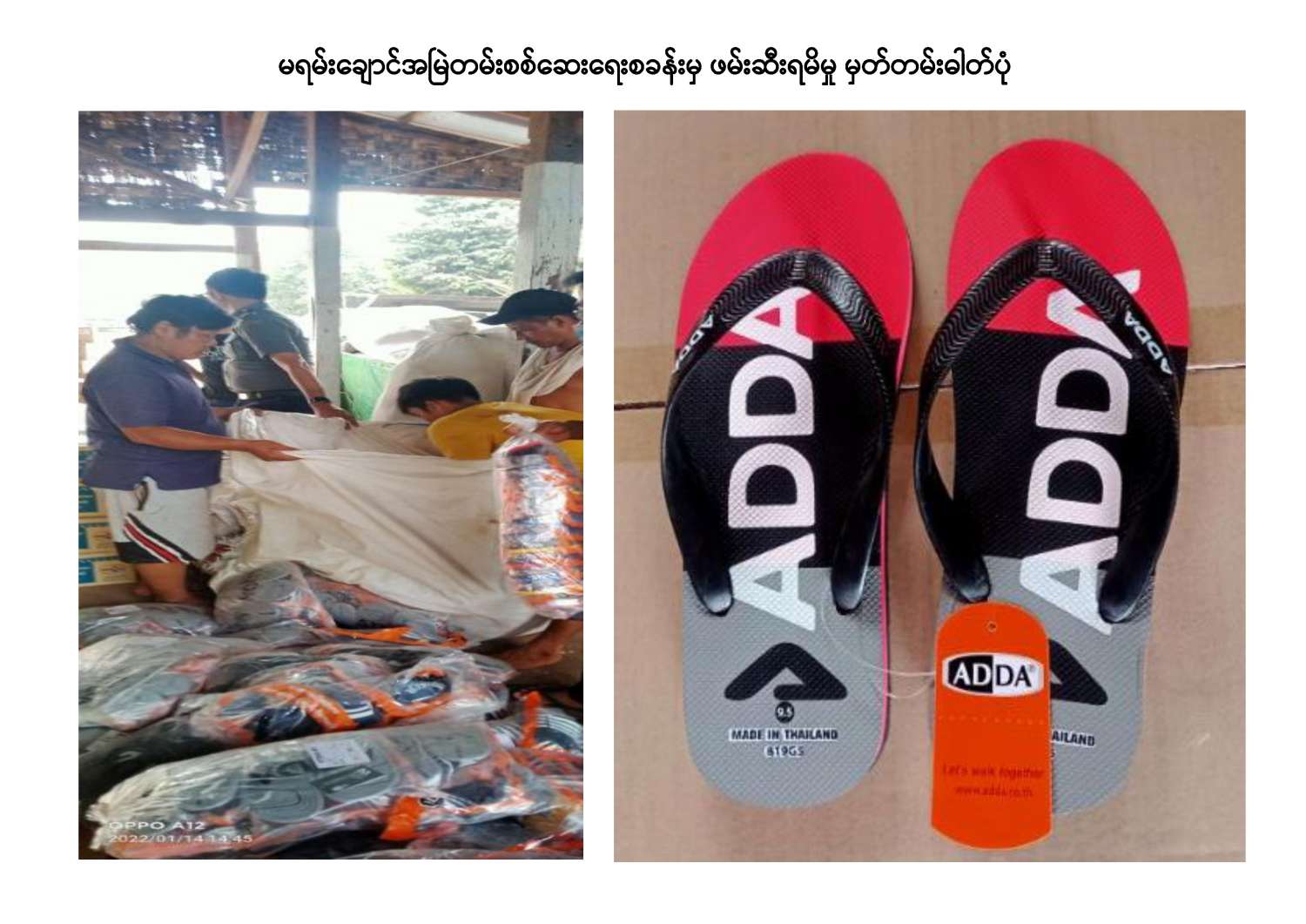 ထို့အတူ ယနေ့တွင် မရမ်းချောင်အမြဲတမ်း စစ်ဆေးရေးစခန်းရှိ အကောက်ခွန် ဦးစီးဌာနနှင့် ပူးပေါင်း စစ်ဆေးရေးအဖွဲ့မှ စစ်ဆေးမှုများပြုလုပ်စဉ် Mitsubishi Fuso Truck ယာဉ်အမှတ်၊ 4K-7217 (၁၂)ဘီး ယာဉ်ပေါ်၌ သွင်းကုန်ကြေငြာလွှာတွင် ဖော်ပြပါရှိခြင်းမရှိဘဲ သယ်ဆောင်လာသော (Adda အမှတ်တံဆိပ်) မိုးတွင်းစီးဖိနပ် (၄၀၀၀) (ခန့်မှန်းတန်ဖိုးငွေကျပ် ၈,၀၀၀,၀၀၀) နှင့် အဆိုပါပစ္စည်းများ သယ်ဆောင် လာသော Mitsubishi Fuso Truck ယာဉ်(၁)စီး (ခန့်မှန်းတန်ဖိုး ငွေကျပ် ၃၀,၀၀၀,၀၀၀)တို့ကို ဖမ်းဆီးရမိခဲ့ပြီး ဖမ်းဆီးအမှု(၂)မှု၊ (ခန့်မှန်းတန်ဖိုးငွေကျပ် ၃၈,၀၀၀,၀၀၀) ကို အကောက်ခွန်ဦးစီးဌာန၏ လုပ်ထုံးလုပ်နည်းများနှင့်အညီ အရေးယူ ဆောင်ရွက်လျက်ရှိသည်။