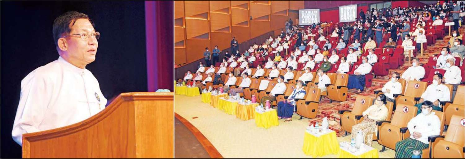 ကျွန်တော်တို့နိုင်ငံမှာ ဆေးရုံ ၁,၀၇၇ ခု၊ ဆေးပေးခန်း ၁၁,၄၂၇ ခုရှိပြီး ဆေးရုံ ၇၆၅ ရုံ၊ ဆေးပေးခန်း ၇,၄၃၀ ခု လုပ်ငန်းဆောင်ရွက်နိုင်မှုရှိပါတယ်။ တစ်နိုင်ငံလုံး ခန့်အပ်ဆရာဝန် ၁၄,၆၇၈ ဦး၊ ကျန်းမာရေးဝန်ထမ်း ၁၀၅,၈၃၄ ဦးရှိပြီး အဲဒီအထဲမှ အချို့ဆရာဝန်နဲ့ ကျန်းမာရေး ဝန်ထမ်းများဟာ  နိုင်ငံရေးဝါဒမှိုင်းတွေကြောင့် ပြည်သူများရဲ့ အသက်နဲ့ကျန်းမာရေးကို မငဲ့ကွက်ဘဲ မိမိတို့ရဲ့လုပ်ငန်းခွင်ကို စွန့်ခွာသွားခဲ့ကြပါတယ်။ ဒါ့ကြောင့် ကိုဗစ်-၁၉ ကာလမှာ ကျန်းမာရေးဝန်ထမ်းတွေဟာ သူတို့ရဲ့လူနာရှင်တွေကို မပစ်ခွာဘဲ တာဝန်သိသိသစ္စာရှိရှိ တာဝန် ထမ်းဆောင်ခဲ့လို့ ကျွန်တော်တို့အစိုးရအနေနဲ့ အသိအမှတ်ပြုပါတယ်။ ဆေးရုံ အသီးသီးမှာ လိုအပ်တဲ့ကျန်းမာ‌ရေးဝန်ထမ်းများ နေရာများမှာ တပ်မတော်သားဆေးတပ်ဖွဲ့ဝင်များက ဝင်ရောက် ကူညီဆောင်ရွက်ပေးတာနဲ့ တပ်မတော် ဆေးရုံအသီးသီးမှာ ပြည်သူများဆေးကုသ ပေးနိုင်အောင် ဆောင်ရွက်ပေးခဲ့ပါတယ်။ အငြိမ်းစားကျန်းမာရေးဝန်ထမ်းများနဲ့ အငြိမ်းစား တပ်မတော်ဆေးတပ်ဖွဲ့ဝင်များလည်း ဝင်ရောက်အားဖြည့် ကူညီပေးခဲ့ကြပါတယ်။  ကိုဗစ်-၁၉ ကာလအတွင်း ကျန်းမာရေး ဝန်ထမ်းတွေအပေါ် တာဝန်ထမ်းဆောင်မှုအသိအမှတ်ပြုတဲ့အနေနဲ့ အစိုးရအနေဖြင့် ၁၀,၉၄၄,၅၄၅,၀၀၀ ကျပ် (၁၀.၉၄ ဘီလီယံ)အား ဆုချီးမြှင့်ခဲ့ပါတယ်။