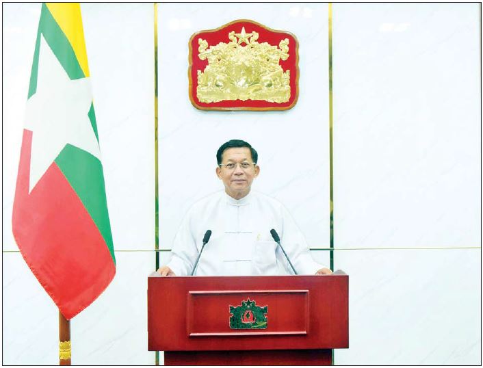 နိုင်ငံတော်စီမံအုပ်ချုပ်ရေးကောင်စီ၏ (၁)နှစ်ပြည့် နိုင်ငံတော်တာဝန်ထမ်းဆောင်ခဲ့မှုနှင့် ပတ်သက်၍ နိုင်ငံတော်စီမံအုပ်ချုပ်ရေးကောင်စီဥက္ကဋ္ဌ၊ နိုင်ငံတော်ဝန်ကြီးချုပ် ဗိုလ်ချုပ်မှူးကြီး မင်းအောင်လှိုင် ပြောကြားသည့် မိန့်ခွန်း