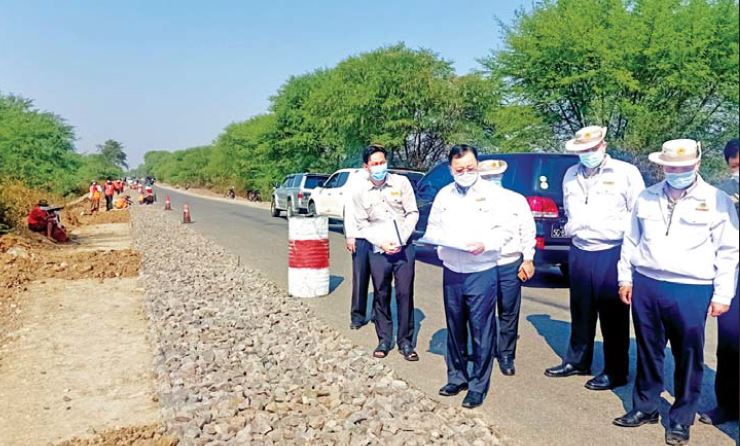 မွန်းလွဲပိုင်းတွင် ကောင်းမွန်ကုမ္ပဏီမှ BOT စနစ်ဖြင့် ဆောင်ရွက်နေသည့် ရန်ကုန်-ပြည်-မန္တလေးလမ်းတစ်လျှောက် လုပ်ငန်းများ ဆောင်ရွက်နေမှုကို ကြည့်ရှုစစ်ဆေးသည်။