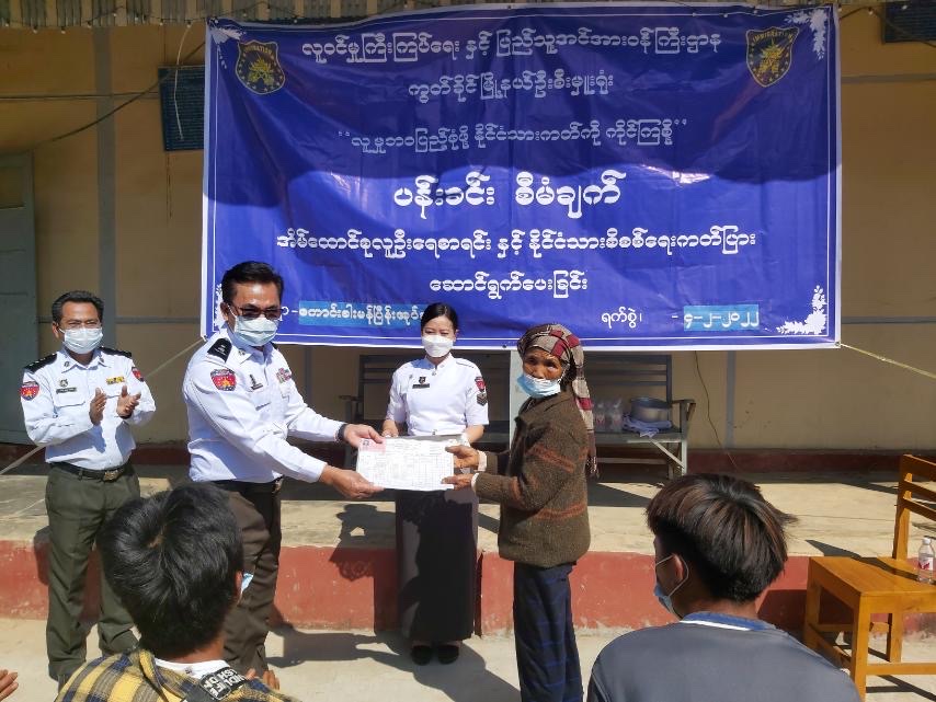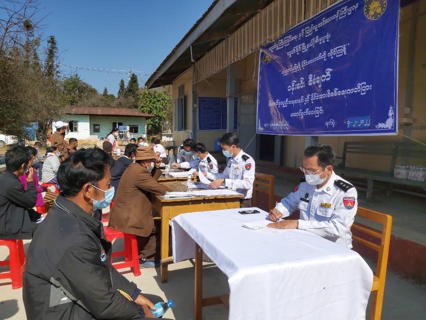 လာရောက်ပြုလုပ်ကြသည့် ဒေသခံပြည်သူများထံမှ အသက်အကြီးဆုံးကြဖြစ်သော တအာင်း (ပလောင်)တိုင်းရင်းသား ဦးအိုက်ရီ(၇၆)နှစ်၊ ဦးစောငြိမ်း(၇၆)နှစ်နှင့် ဒေါ်အေးဆောင် (၈၈)နှစ်တို့ကို နိုင်ငံသားစိစစ်ရေးကတ်ပြားနှင့် အိမ်ထောင်စု လူဦးရေစာရင်းများကို ခရိုင်ဦးစီးမှူး ဦးရဲရင့်ထွန်း က လက်ဝယ်အရောက် ပေးအပ်ခဲ့သည်။ ယနေ့လာရောက် ဆောင်ရွက်ကြသည့် ကျေးရွာအုပ်စုများမှ အိမ်ထောင်စု(၄၂)စု၊ ပန်းခင်းစီမံချက်တွင် အကြုံးဝင်သည့် နိုင် ၃(က)(၁၆)ဦး၊ နိုင် ၆(က) (၁၇၂)ဦး၊ အသစ်လဲလှယ် (၂၆)ဦးနှင့် အခြားမိတ္တူ (၄)ဦး၊ စုစုပေါင်း (၂၁၈)ဦးကို နေ့ချင်းပြီး ဆောင်ရွက်ပေးခဲ့ကြောင်း သိရသည်။