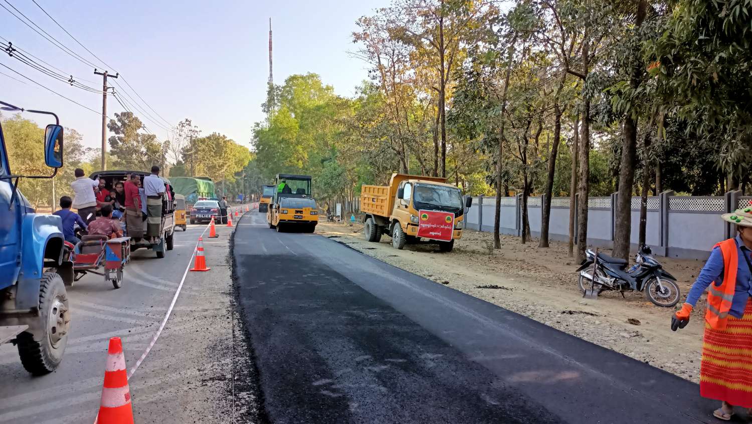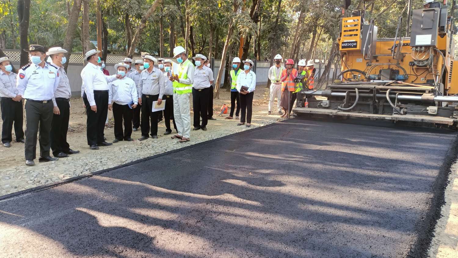 ယင်းနောက် မင်းဘူး-အမ်း-စစ်တွေလမ်းကို (၂၄)ပေ အကျယ် ကတ္တရာကွန်ကရစ်လမ်း (၁)မိုင် (၂)ဖာလုံ ခင်းခြင်းလုပ်ငန်း ဆောင်ရွက်နေမှုကို ကြည့်ရှုစစ်ဆေးပြီး လုပ်ငန်းဆောင်ရွက်ရာတွင် ယာဉ်ကြောပိတ်ဆို့မှု မရှိစေရေး ဂရုပြုဆောင်ရွက်ကြရန်နှင့် လုပ်ငန်းခွင်အန္တရာယ်ကင်းရှင်းရေးနှင့် လမ်းအရည်အသွေး စံချိန်စံနှုန်းအတိုင်း ဆောင်ရွက်ကြရန် မှာကြားခဲ့ကြောင်း သိရသည်။