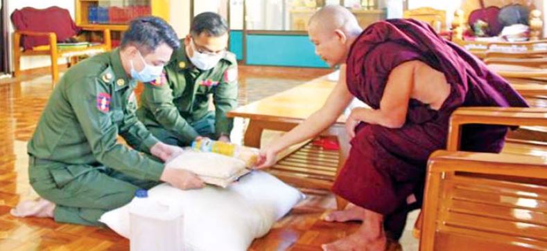 တပ်မတော်(ကြည်း၊ ရေ၊ လေ) အရာရှိ၊ စစ်သည်၊ အရာထမ်း၊ အမှုထမ်းများနှင့် စေတနာရှင်အလှူရှင်များက မြို့နယ်အသီးသီးရှိ ဘုန်းတော်ကြီး ကျောင်းများ၊ သာသနာနွယ်ဝင် သီလရှင်ကျောင်းများနှင့် ဘာသာရေးကျောင်းများသို့ ဆွမ်းဆန်တော်၊ ဆီ၊ ဆား၊ ပဲ အမယ်လေးမျိုးနှင့် လှူဖွယ်ပစ္စည်းများ လှူဒါန်းခြင်း၊ နေ့ဆွမ်းများ ဆက်ကပ်လှူဒါန်းခြင်းနှင့် ကျန်းမာရေး စစ်ဆေးပေးခြင်းများကို ဆောင်ရွက်လျက်ရှိသည်။