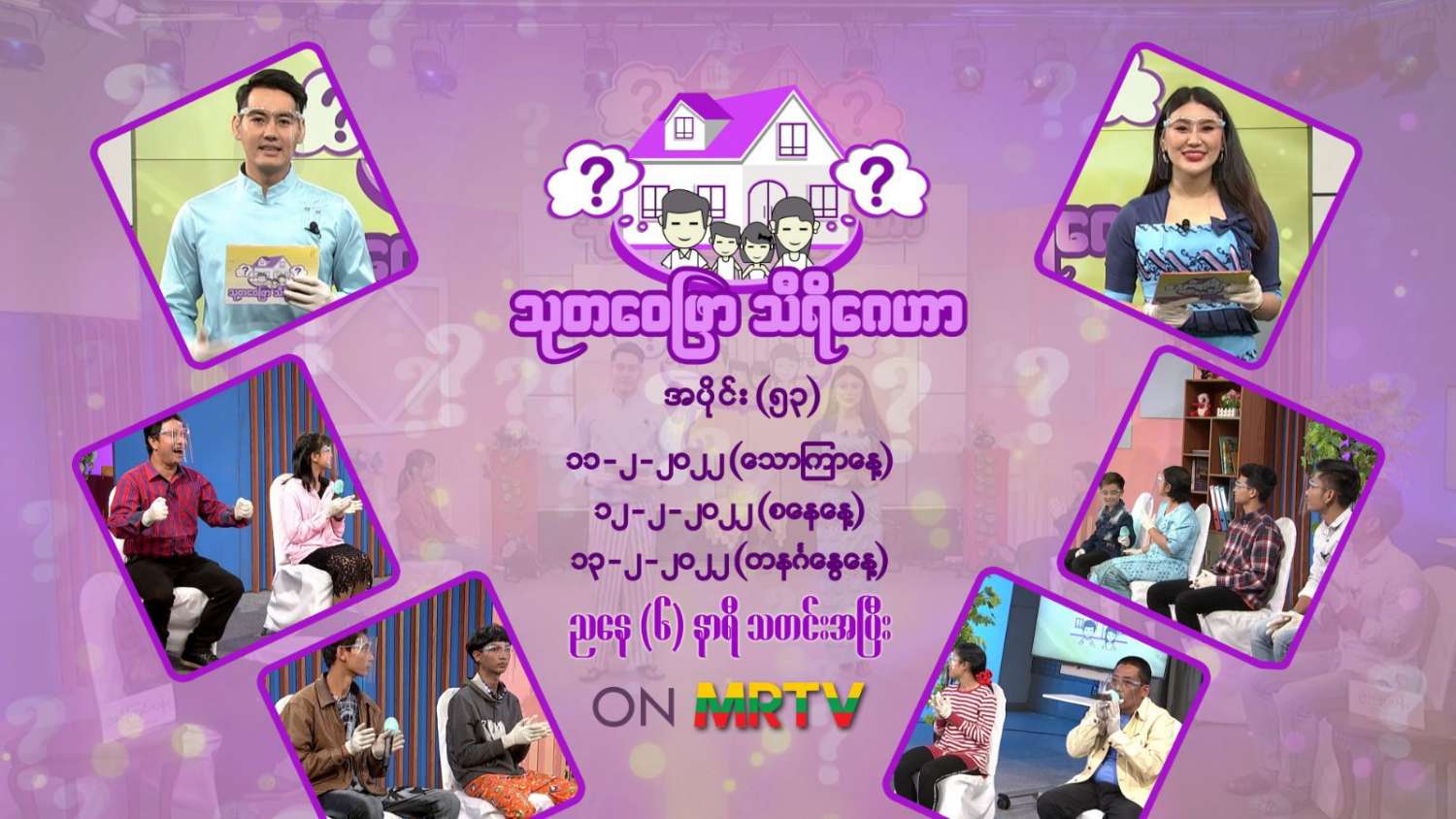 သုတဝေဖြာသီရိဂေဟာ မိသားစုပြိုင်ပွဲ အသိပညာပေးအစီအစဉ်၊ လူရွှင်တော်အသင်းနှင့် ကိုလူချောအဖွဲ့တို့မှ မိသားစုများ ပါဝင်ယှဉ်ပြိုင်မည်