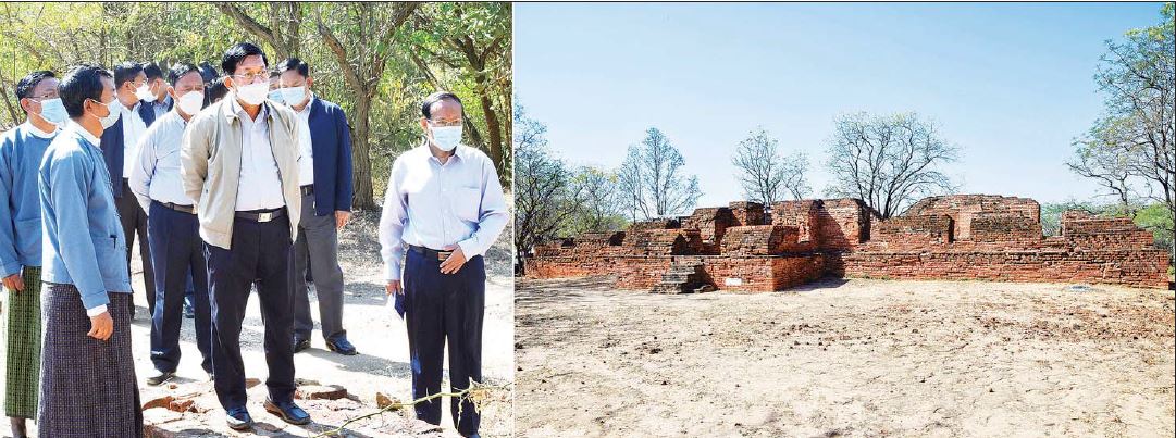 ဆက်လက်ပြီး နိုင်ငံတော်စီမံအုပ်ချုပ်ရေးကောင်စီဥက္ကဋ္ဌ၊ နိုင်ငံတော်ဝန်ကြီးချုပ်၊ ဇနီးနှင့် အဖွဲ့ဝင်များသည် ကမ္ဘာ့အမွေအနှစ်စာရင်းဝင် ဗိဿနိုးမြို့ဟောင်းအတွင်းရှိ KKG-2 ဘုန်းကြီး ကျောင်းပန္နက်ပုံရှိ အဆောက်အဦ၊ KKG-3 စေတီပန္နက်ပုံရှိ အဆောက်အဦ၊ KKG-4 ဘာသာရေးဆိုင်ရာ အထိမ်းအမှတ်အဆောက်အဦ၊ BTO- 1၊   BTO- 2၊   BTO- 3၊  BTO- 4၊ BTO- 5 နန်းတော်ရာ အတွင်း၊ အပြင် အုတ်ရိုးများကို ကြည့်ရှုလေ့လာခဲ့ပြီး မြို့ဟောင်းအတွင်းရှိ ရှေးဟောင်းအဆောက်အဦများကို တစ်နေရာနှင့် တစ်နေရာ မြင်နိုင်ရန်၊ လျှောက်လမ်းများ၊ လမ်းညွှန်ဆိုင်းဘုတ်များကို စနစ်တကျ ပြုလုပ်ထားရှိရန်နှင့် စနစ်တကျထိန်းသိမ်းဆောင်ရွက်ရန် လိုအပ်သည့် အခြေအနေများနှင့် ပတ်သက်၍ လိုအပ်သည်များကို ဆွေးနွေးမှာကြားခဲ့သည်။