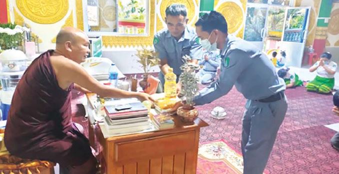 ထိုသို့ လှူဒါန်းလျက်ရှိရာ ယနေ့နံနက်ပိုင်းတွင်ကော့သောင်း ခရိုင်ဖွံ့ဖြိုးမှုကြီးကြပ်ရေးရုံးမှ ဒုတိယညွှန်ကြားရေးမှူး ဦးစိုးနိုင်နှင့် ရုံးဝန်ထမ်းများ၊ ကော့သောင်း ခရိုင်သာသနာရေးဦးစီးမှူး ဦးနန္ဒစိုး၊ လက်ထောက်ညွှန်ကြားရေးမှူးနှင့် တာဝန်ရှိသူများက ကော့သောင်းမြို့ မြသီတဂူ စာသင်တိုက်သို့ ဆွမ်းဆန် လေးအိတ်၊ ဆီ ၁၀ ပိဿာ၊ ကုလားပဲ ခုနစ်ပိဿာ စသည့် လှူဒါန်းဖွယ်ပစ္စည်းများကို ကျောင်းထိုင်ဆရာတော် ဦးကောဏ္ဍာညထံသို့ လှူဒါန်းသည်။