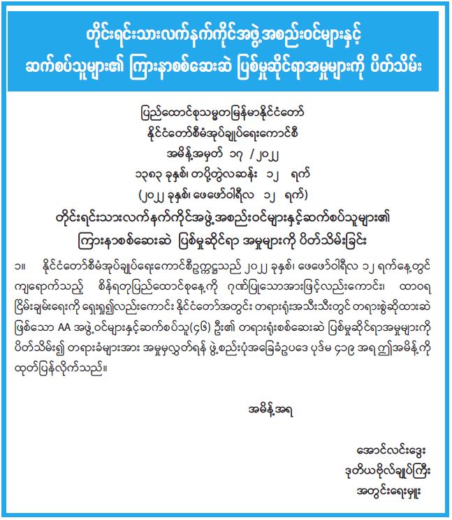 တိုင်းရင်းသားလက်နက်ကိုင်အဖွဲ့အစည်းဝင်များနှင့် ဆက်စပ်သူများ၏ ကြားနာစစ်ဆေးဆဲ ပြစ်မှုဆိုင်ရာ အမှုများကို ပတ်သိမ်းခြင်း 02/12/2022