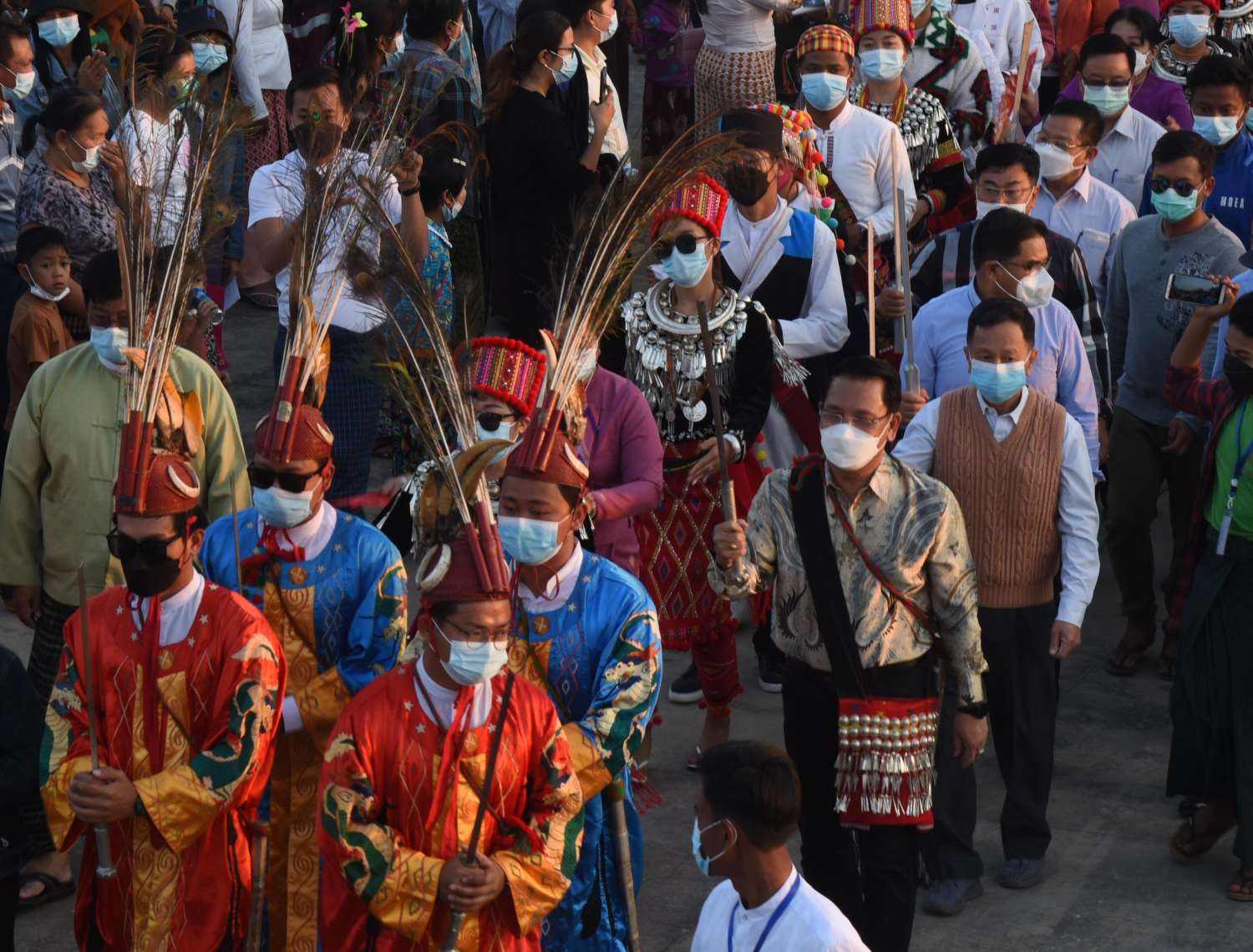 ထို့နောက် ကချင်ပြည်နယ်ကိုယ်စားပြု ဂုဏ်ပြုယာဉ်ရှေ့၌ ကချင်ပြည်နယ် ရိုးရာယဉ်ကျေးမှုအဖွဲ့များက ကချင်ရိုးရာ အကအလှများဖြင့် ကပြဖျော်ဖြေ ကြရာပြည် ထောင်စုဝန်ကြီး ဦးမောင်မောင်အုန်း၊ ဦ:စောထွန်းအောင်မြင့်၊ နေပြည်တော်ကောင်စီဥက္ကဋ္ဌ ဒေါက်တာမောင်မောင်နိုင်၊ ကချင်ပြည်နယ်ဝန်ကြီး ချုပ် ဦးခက်ထိန်နန်၊ ဒုတိယဝန်ကြီးများနှင့် နေပြည်တော်ကောင်စီဝင်များက ပြည်သူများနှင့်အတူ ပါဝင်ဆင်နွှဲကြသည်။