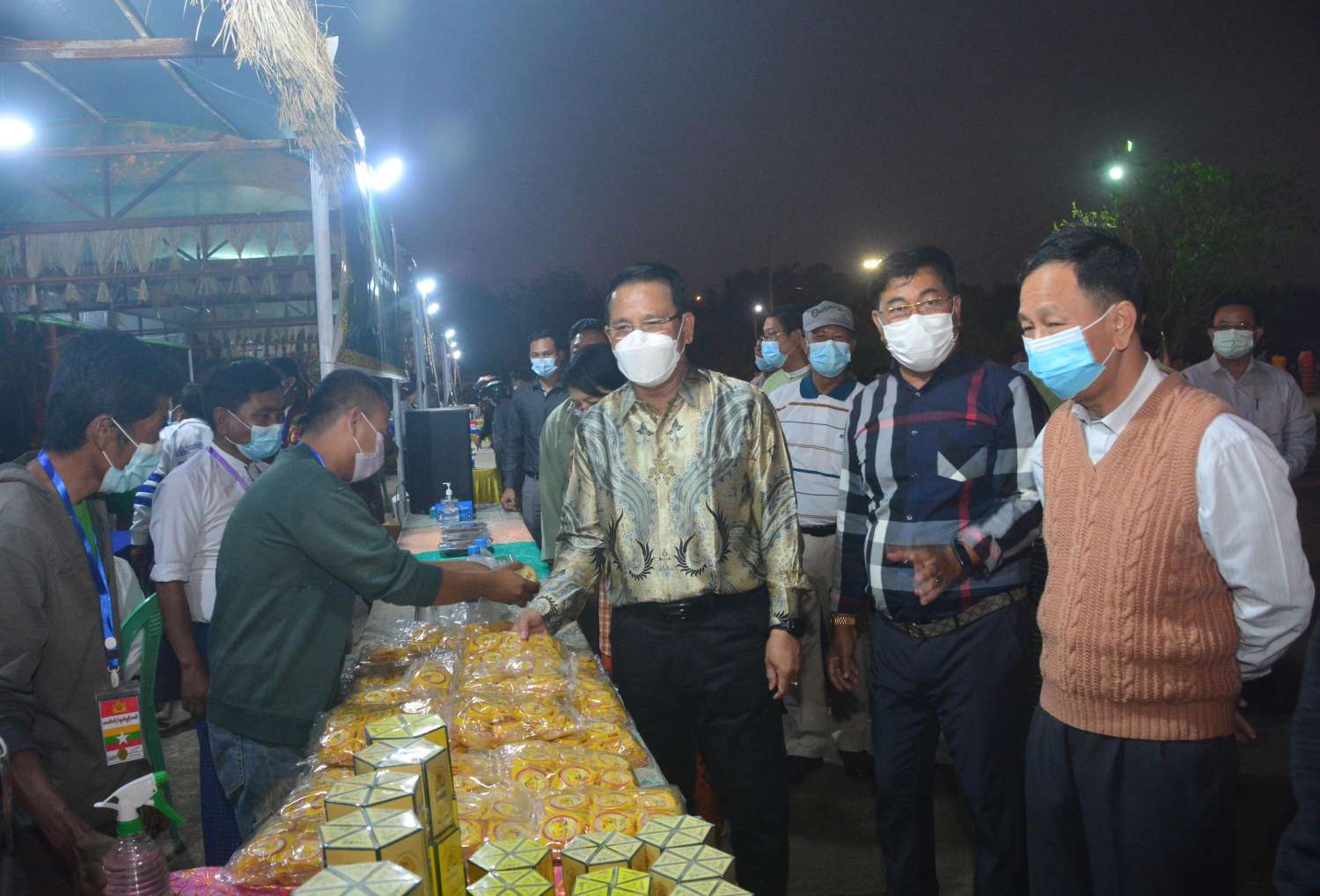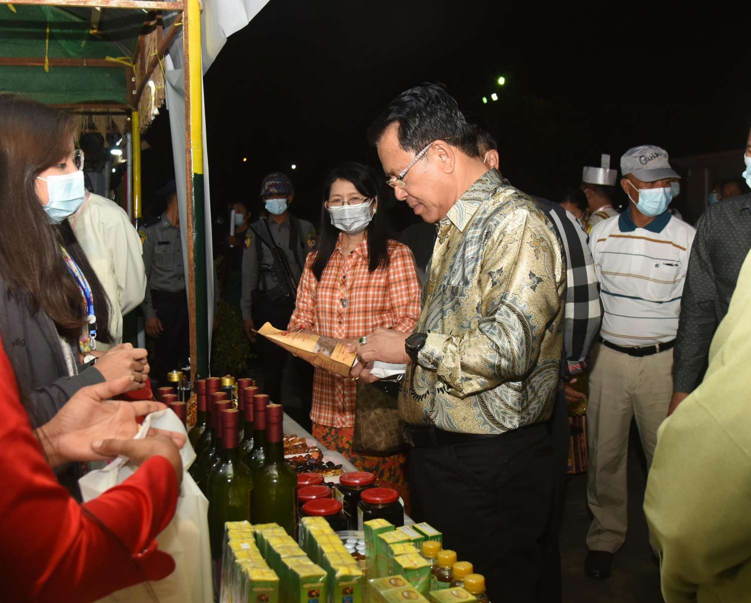 ယင်းနောက် ပြည်ထောင်စုဝန်ကြီးနှင့်အဖွဲ့သည် ပြပွဲလာပြည်သူများ ဝယ်ယူအားပေးနိုင်ရန်နှင့် သုံးဆောင်နိုင်ရန်အတွက် တိုင်းဒေသကြီး/ ပြည်နယ် အလိုက် ဆိုင်များဖွင့်လှစ်၍ တိုင်းရင်းသားရိုးရာအစားအစာများ ရောင်းချပေးနေမှုကို ကြည့်ရှုအားပေးသည်။