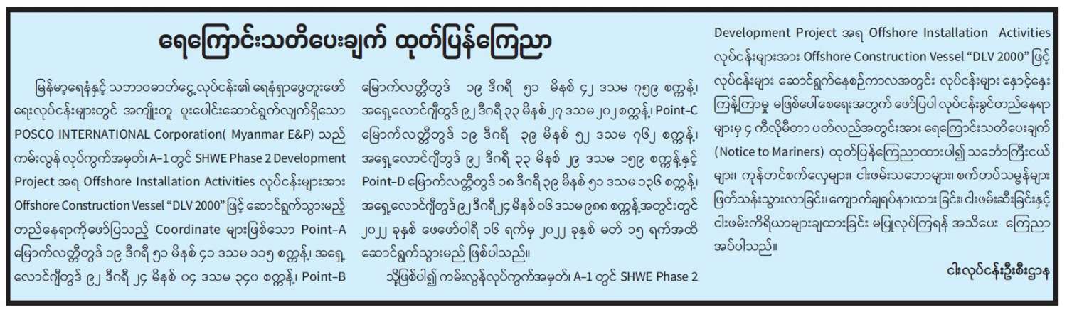 ရေကြောင်းသတိပေးချက် ထုတ်ပြန်ကြေညာ