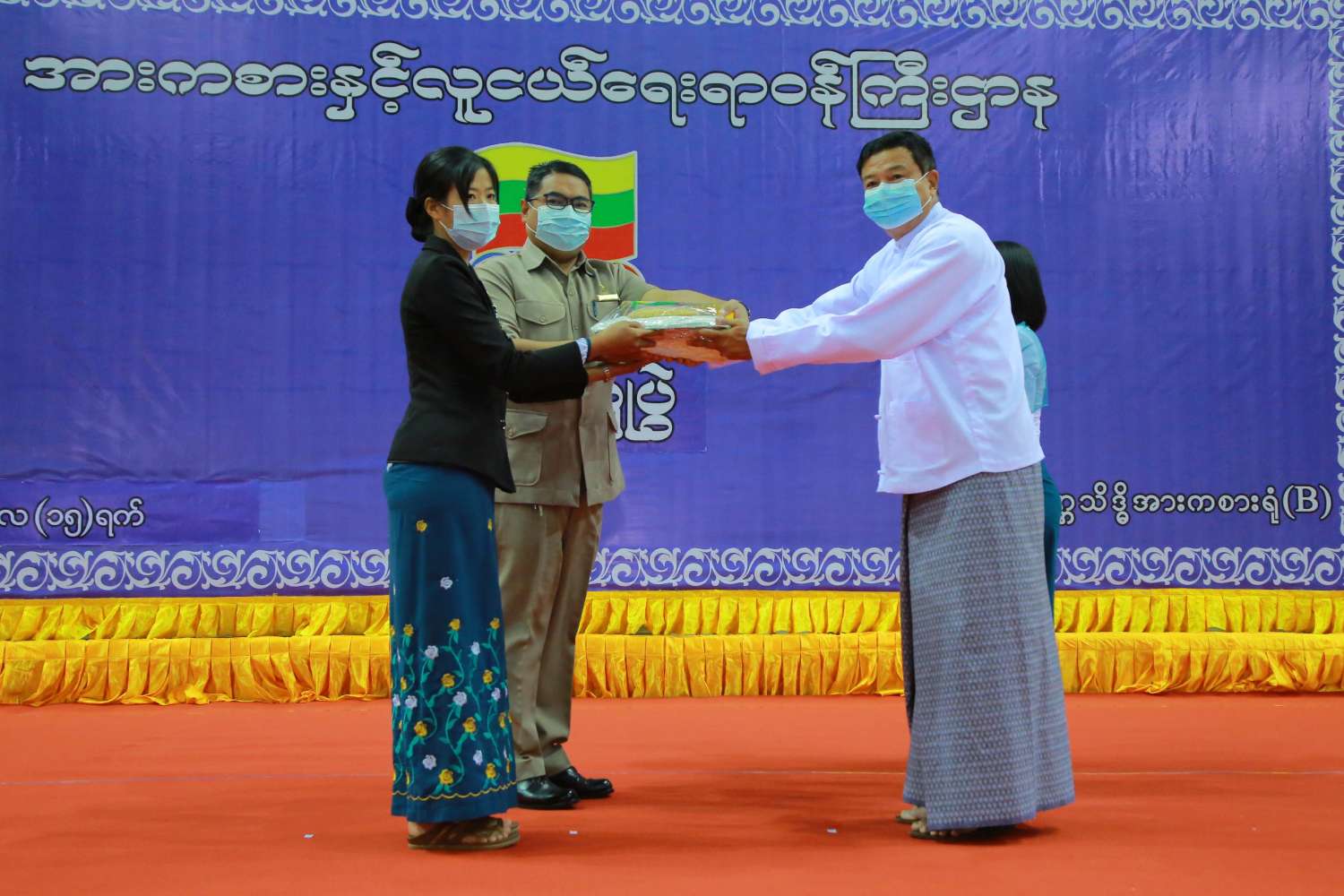 ရှေးဦးစွာ ပြည်ထောင်စုဝန်ကြီး ဦးမင်းသိန်းဇံက (၇၅)နှစ်မြောက် စိန်ရတုပြည်ထောင်စုနေ့ အခမ်းအနားတွင် ကျရာကဏ္ဍအသီးသီးမှ စိတ်ရောကိုယ်ပါ ပါဝင်ကူညီဆောင်ရွက်ခဲ့ကြသည့် ဝန်ထမ်းများအားလုံးကို အထူးပင်ဂုဏ်ပြုပါကြောင်း၊ (၇၅)နှစ်မြောက် စိန်ရတုပြည်ထောင်စု နေ့အထိမ်းအမှတ် လူငယ်နှင့်စာပေပွဲတော်အခမ်းအနားတွင်လည်း ကိုယ်စွမ်းဉာဏ်စွမ်းရှိသ၍ ကျရာကဏ္ဍမှ ပါဝင်ကူညီဆောင်ရွက်ခဲ့သည့် အားကစားကွင်းနှင့်အားကစားရုံဌာနခွဲမှ ညွှန်ကြား ရေးမှူးနှင့် ဝန်ထမ်း (၃၂၁)ဦးတို့ကို ဝန်ကြီးဌာနကိုယ်စား ဂုဏ်ယူအသိအမှတ်ပြုပါကြောင်း၊ အလားတူ ပြည်ထောင်စုနေ့ ချီတက်တပ်ခွဲတွင် ပါဝင်ခဲ့သည့် အားကစားနှင့်လူငယ်ရေးရာ ဝန်ကြီးဌာန ကိုယ်စားပြုစစ်ရေး ပြတပ်ခွဲမှ ပါဝင်ချီတက်ခဲ့ကြသော ဝန်ထမ်း (၁၆၅)ဦးကိုလည်း ဂုဏ်ယူအသိအမှတ်ပြုပါကြောင်း၊ ထို့ပြင် (၇၅)နှစ်မြောက် စိန်ရတုပြည်ထောင်စုနေ့ အခမ်းအနားသို့ တက်ရောက်လာကြသည့် ပြည်နယ်နှင့်တိုင်းဒေသကြီးများမှ ယဉ်ကျေးမှုအဖွဲ့ဝင်များကို ဧည့်ခံကြိုဆိုကျွေးမွေးရေး ဆောင်ရွက်ခဲ့ကြသော အားကစားနှင့်ကာယပညာဦးစီးဌာန၊ ယှဉ်ပြိုင်ရေးနှင့်လေ့ကျင့်ရေးဌာနခွဲ (၂)နှင့် အခြားဌာနခွဲများမှ ဝန်ထမ်း (၉၀)တို့ကို လည်း ဂုဏ်ယူအသိအမှတ်ပြုပါကြောင်း ပြောကြားပြီး အဘက်ဘက်မှ ဝိုင်းဝန်းကူညီ ဆောင်ရွက်ပေးခဲ့သည့် ဝန်ထမ်းများကို ဂုဏ်ပြုသော အားဖြင့် ဆန် (၆၄) အိတ် (၁၈)ပြည်၊ ဆီ (၂၅၉) ပိဿာ၊ ကုလားပဲ (၁၅၅) ပိဿာ (၄၀) ကျပ်သား၊ စုစုပေါင်းကုန်ကျ ငွေ တန်ဖိုးငွေကျပ် (၅၁,၈ဝ,ဝဝဝိ/-) အား ဝန်ထမ်း (၅၁၈)ဦးတို့ကို အချိုးကျထောက်ပံ့ပေးအပ်ခဲ့ကြောင်းသိရသည်။