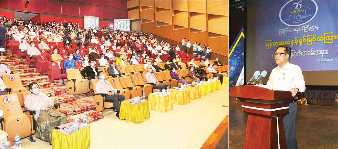 ပြန်ကြားရေးဝန်ကြီးဌာန မြန်မာ့အသံနှင့် ရုပ်မြင်သံကြား၏ (၇၆) နှစ်မြောက် နှစ်ပတ်လည်နေ့ အခမ်းအနားကို ယနေ့မွန်းလွဲပိုင်းတွင် နေပြည်တော် တပ်ကုန်းမြို့ရှိ မြန်မာ့အသံနှင့် ရုပ်မြင်သံကြားရုံးချုပ်၌ ကျင်းပသည်။