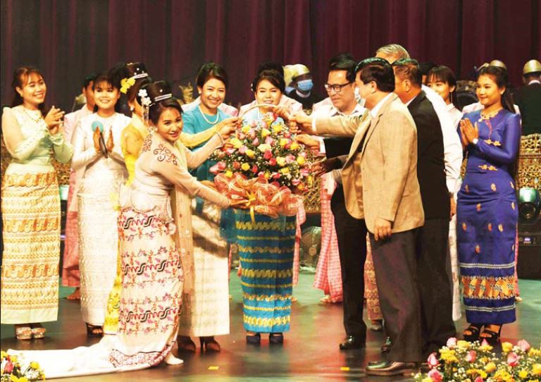 ယင်းနောက် ပြည်ထောင်စုဝန်ကြီးများက အနုပညာရှင်များနှင့် ဖျော်ဖြေရေးအဖွဲ့များကိုဂုဏ်ပြု ပန်းခြင်းပေးအပ်ပြီး အခမ်းအနားကို ရုပ်သိမ်းလိုက်သည်။