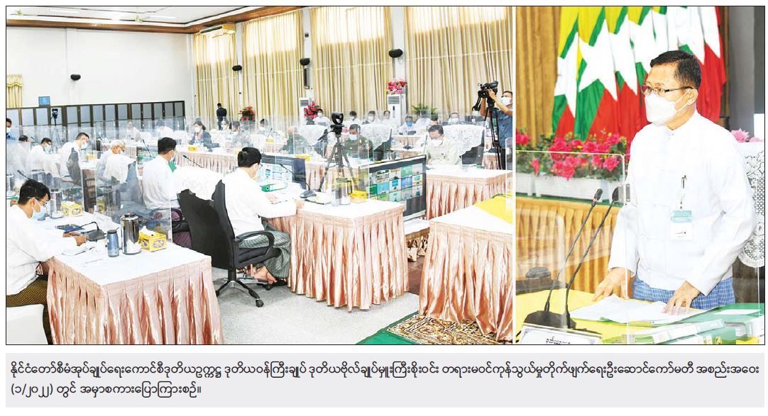 ထို့နောက် နေပြည်တော်ကောင်စီ၊ တိုင်းဒေသကြီးနှင့်ပြည်နယ် တရားမဝင် ကုန်သွယ်မှုတိုက်ဖျက်ရေး အထူးအဖွဲ့ဥက္ကဋ္ဌများက တရားမဝင်ကုန်သွယ်မှု တိုက်ဖျက်ရေး ဆောင်ရွက်နေမှုများနှင့်စပ်လျဉ်း၍ ရှင်းလင်းတင်ပြကြသည်။