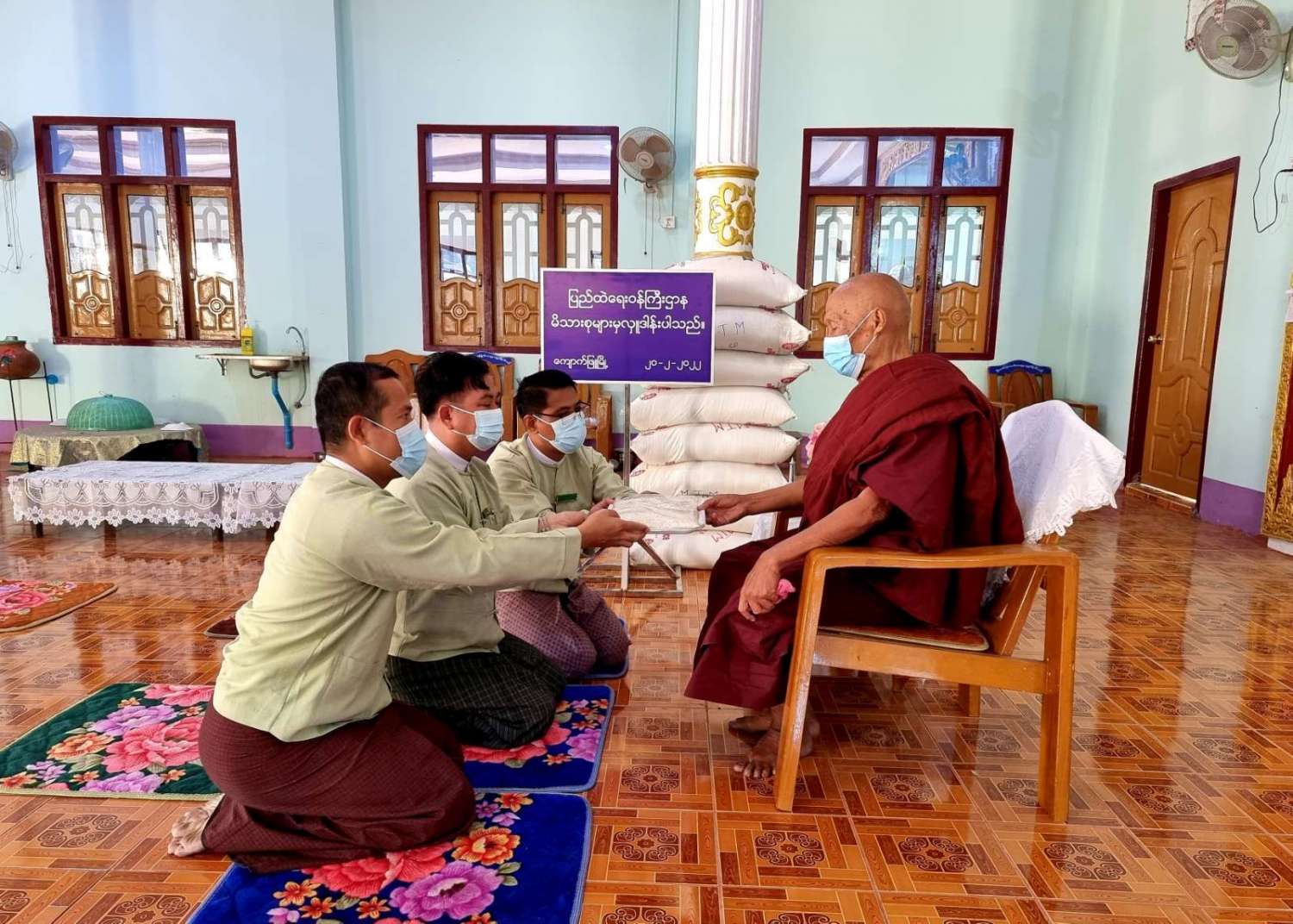 ထိုသို့ဆောင်ရွက်လျက်ရှိရာ ယနေ့တွင် နေပြည်တော်ကောင်စီနယ်မြေ ပုဗ္ဗသီရိမြို့နယ်ရှိ စိန်ရာဇာသာသနာ့လင်္ကာရ ပရိယတ္တိစာသင်တိုက် သို့လည်းကောင်း၊ ကချင်ပြည်နယ် မြစ်ကြီးနားမြို့နယ်ရှိ မြေမြင့်ကျောင်းတိုက်သို့လည်းကောင်း၊ စစ်ကိုင်းတိုင်းဒေသကြီး တမူးမြို့နယ်ရှိ သုခကာရီကျောင်းတိုက်သို့လည်းကောင်း၊ မန္တလေးတိုင်းဒေသကြီး မြင်းခြံမြို့နယ်ရှိ ချောင်းဒေါင်းပရိယတ္တိ စာသင်တိုက်သို့လည်းကောင်း၊ ရခိုင်ပြည်နယ် ကျောက်ဖြူမြို့နယ်ရှိ နဂါးကျောင်းပရိယတ္တိ စာသင်တိုက်သို့လည်းကောင်း၊ ရှမ်းပြည်နယ် ကျိုင်းတုံမြို့နယ်ရှိ ဓမ္မောဒယ ပရိယတ္တိ စာသင်တိုက်သို့လည်းကောင်း သွားရောက်၍ တာဝန်ရှိသူများက ဆရာတော်၊ သံဃာတော်များအတွက် ဆွမ်းဆန်တော်များကို ဆက်ကပ်လှူဒါန်း ခဲ့ကြကြောင်း သိရသည်။