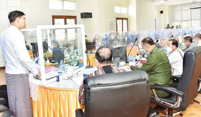 ချင်းပြည်နယ်၊ ဟားခါးမြို့၌ ရောက်ရှိနေသည့် နိုင်ငံတော်စီမံအုပ်ချုပ်ရေး ကောင်စီအဖွဲ့ဝင် ကာကွယ်ရေးဝန်ကြီးဌာန၊ ပြည်ထောင်စုဝန်ကြီး ဗိုလ်ချုပ်ကြီး မြထွန်းဦးနှင့် ဦးမောင်းဟာ တို့သည် ဖေဖော်ဝါရီ ၂၀ ရက် ညနေပိုင်းတွင် ဟားခါးမြို့ ပြည်နယ်အစိုးရအဖွဲ့ရုံး အစည်းအဝေးခန်းမ၌ ပြည်နယ်အစိုးရအဖွဲ့ဝင်များ ပြည်နယ်၊ ခရိုင်၊ မြို့နယ်အဆင့် ဌာနဆိုင်ရာတာဝန်ရှိသူများနှင့် တွေ့ဆုံသည်။