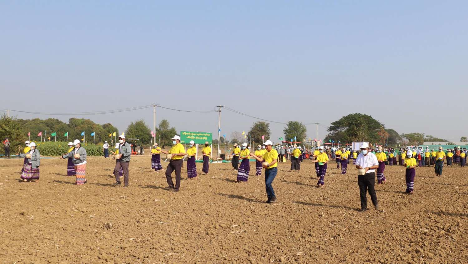 သစ်စိမ်းမြေဩဇာစိုက်ပျိုးရေး ပိုက်ဆံလျှော်မျိုးစေ့ ကြဲပက်ပွဲအခမ်းအနားကို ယနေ့ နံနက်ပိုင်းက “မျိုးစေ့ပြပွဲ ၂၀၂၂” ၏ စနစ်ကျ စက်မှုလယ်ယာမြေ ပြကွက်တွင် ကျင်းပသည်။