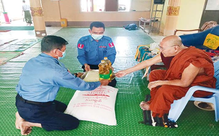 ထိုသို့ဆောင်ရွက်လျက်ရှိရာ ယနေ့တွင် ရှမ်းပြည်နယ်(တောင်ပိုင်း)၊ မိုင်းနောင် မြို့နယ်ရှိ သီရိနန္ဒာဝတီကုန်းတော်ဘုန်းတော်ကြီးကျောင်း၊ မင်္ဂလာရန်အောင် ဘုန်းတော်ကြီးကျောင်း၊ ရှမ်းပြည်နယ်(အရှေ့ပိုင်း)၊ မိုင်းဖြတ်မြို့၊ ဝမ်ဟွေဘုန်းတော် ကြီးကျောင်း၊ ရန်ကုန်တိုင်းဒေသကြီး၊ လှည်းကူးမြို့နယ်၊ ရဲမွန်ကျေးရွာရှိ ကျိုက်ထီးရိုး လေးကျောင်းတိုက်၊ ဆိပ်ကြီးခနောင်တိုမြို့နယ်၊ ခနောင်တိုအရှေ့ရပ်ကွက်ရှိ ဓမ္မပီတိ ကျောင်းတိုက်၊ ဧရာဝတီတိုင်းဒေသကြီး၊ ကန်ကြီးထောင့်မြို့၊ သဟပုညကာရီကျောင်း၊ မန္တလေးတိုင်းဒေသကြီး၊ ပုသိမ်ကြီးမြို့နယ်၊ ရန်ကင်းတောင်ခြေရှိ ချမ်းမြရံသီပရိယတ္တိ စာသင်တိုက်နှင့် ပဲခူးတိုင်းဒေသကြီး၊ ပြည်ခရိုင်၊ ပြည်မြို့၊ မြောင်းငယ်လှကျေးရွာရှိ မြောင်းငယ်လှဘုန်းတော်ကြီးကျောင်းတို့ရှိ ဆရာတော်၊ သံဃာတော်များ၊ သာသနာ နွယ်ဝင် သီလရှင်များအား ဆွမ်း ဆန်တော်၊ ဆီ၊ ဆား၊ ပဲ အမယ်(၄)မျိုး၊ နဝကမ္မ အလှူငွေများ၊ ကိုဗစ်-၁၉ ရောဂါ ကာကွယ်ရေးအထောက်အကူပြုပစ္စည်းများ၊ နေ့ဆွမ်း များနှင့် လှူဖွယ်ပစ္စည်းများကို သက်ဆိုင်ရာ တိုင်းစစ်ဌာနချုပ် အသီးသီးမှ တာဝန် ရှိသူများက သွားရောက် ဆက်ကပ်လှူဒါန်းခဲ့ကြကြောင်း သတင်းရရှိသည်။