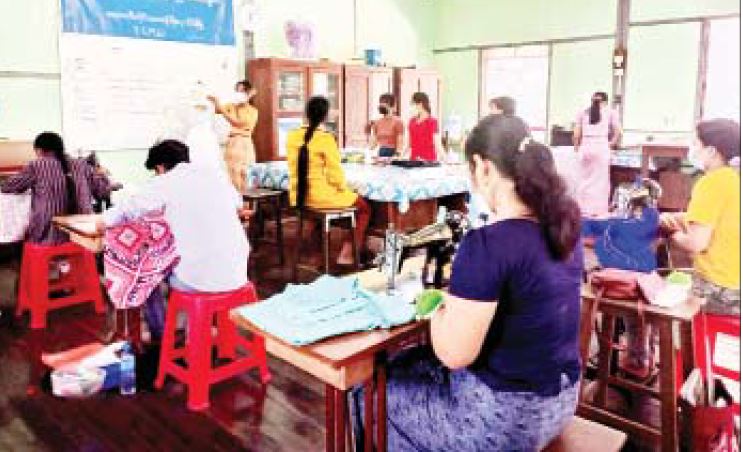 အဆိုပါအိမ်တွင်းမှုသက်မွေးလုပ်ငန်း ပညာသင်ကျောင်းများ၌ သင်တန်းအပတ်စဉ် (၄/ ၂၀၂၂)ကို ဖေဖော်ဝါရီ ၂၁ ရက်မှ မတ် ၃၁ ရက်အထိ ကျန်းမာရေး ဝန်ကြီးဌာနမှ ထုတ်ပြန်ထားသည့် ကိုဗစ်-၁၉ ရောဂါကာကွယ်ရေးဆိုင်ရာ လမ်းညွှန်ချက်များနှင့် အညီ ဖွင့်လှစ်လျက်ရှိပြီး အိမ်တွင်းမှု သက်မွေး လုပ်ငန်း ပညာသင်ကျောင်း ၁၀ ကျောင်းတွင် ဖေဖော်ဝါရီ ၂၅ ရက်အထိသင်တန်းသား သင်တန်းသူ ၅၉၁ ဦးနှင့် စနေ၊ တနင်္ဂနွေနေ့များတွင် ဖွင့်လှစ်သည့် အထူးသင်တန်းများတွင် သင်တန်းသား သင်တန်းသူ ၃၀ စုစုပေါင်း ၆၂၁ ဦး သင်တန်းသား-၃၁ ဦး၊ သင်တန်းသူ- ၅၆၀) တက်ရောက် လျက်ရှိသည်။