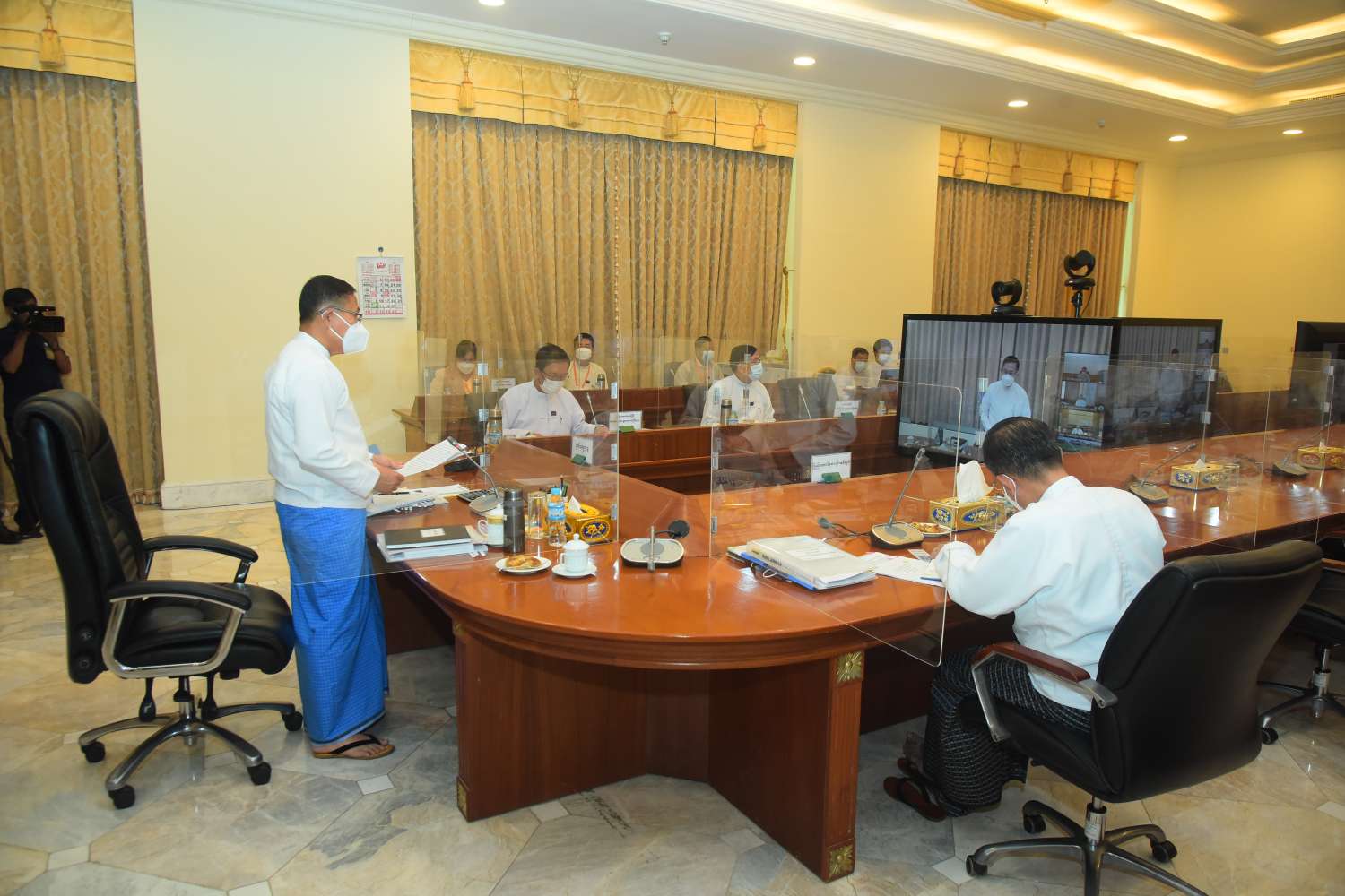 အစည်းအဝေးသို့ စီမံကိန်းနှင့် ဘဏ္ဍာရေးဝန်ကြီးဌာန ပြည်ထောင်စုဝန်ကြီး ဦးဝင်းရှိန်၊ ပြည်ထောင်စုစာရင်းစစ်ချုပ် ဒေါက်တာကံဇော်၊ ဒုတိယဝန်ကြီး ဦးမောင်မောင်ဝင်းနှင့် တာဝန်ရှိသူများတက်ရောက်ကြပြီး ပြည်ထောင်စုအဆင့် ဌာနများနှင့် အဖွဲ့အစည်းများမှ တာဝန်ရှိသူများက ဗီဒီယိုကွန်ဖရင့်ဖြင့် တက်ရောက်ကြသည်။