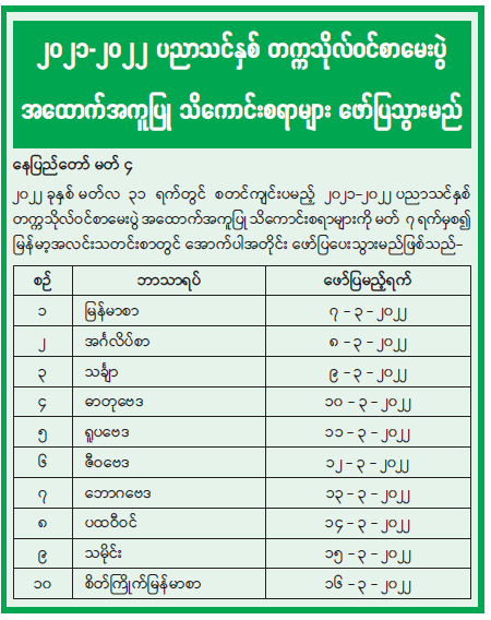 ၂၀၂၁-၂၀၂၂ ပညာသင်နှစ် တက္ကသိုလ်ဝင်စာမေးပွဲ အထောက်အကူပြု သိကောင်းစရာများ ဖော်ပြသွားမည်