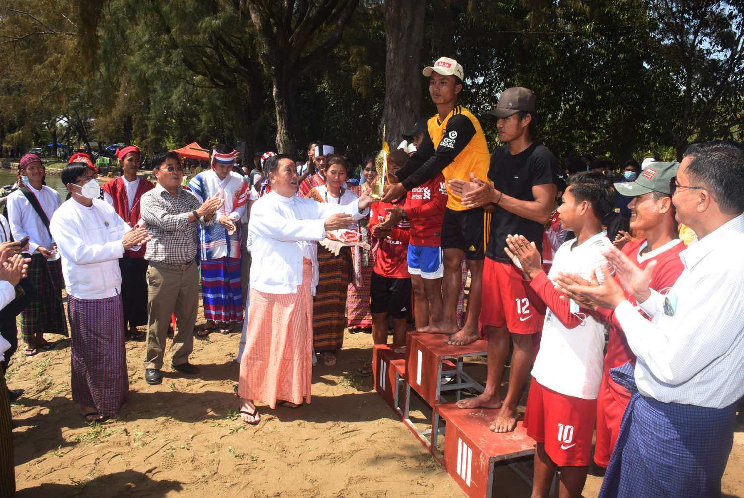 ၎င်းနောက် ဧည့်သည်တော်များအား နေ့လယ်စာဖြင့်တည်ခင်းဧည့်ခံခဲ့ပြီး နေ့လယ် စာများသုံး ဆောင်နေစဉ်အတွင်း တိုင်းရင်းသားယဉ်ကျေးမှု အကအလှများ၊ တေးသီချင်းများဖြင့် ဖျော်ဖြေဧည့်ခံ ခဲ့ပါသည်။ မွန်းလွဲပိုင်းတွင် ပြည်ထောင်စုဝန်ကြီးနှင့် ဧည့်သည် တော်များသည် ပြည်ထောင်စု တိုင်းရင်းသားကျေးရွာ (ရန်ကုန်) ဝန်ဆောင်မှုမြှင့်တင်ရေးအထိမ်းအမှတ် လှေလှော်ပြိုင်ပွဲသို့ တက်ရောက်ကြည့်ရှုအားပေး ကြပါသည်။ အဆိုပါ လှေလှော်ပြိုင်ပွဲသို့ တိုင်းရင်းသားရိုးရာအသင်းများ၊ မြန်မာနိုင်ငံလှေလှော်အဖွဲ့ချုပ်မှ အားကစားသမားများ ဝင်ရောက်ပါဝင် ယှဉ်ပြိုင်ခဲ့ကြပါသည်။ ၎င်းနောက် လှေလှော်ပြိုင်ပွဲဆုရရှိသူများအား ပြည်ထောင်စုဝန်ကြီး၊ တိုင်းဒေသကြီးဝန်ကြီးချုပ်၊ ဒုတိယဝန်ကြီး၊ တိုင်းဒေသကြီးအစိုးရအဖွဲ့ဝင် ဝန်ကြီးများနှင့် တာဝန်ရှိသူများက ဒိုင်းဆုများနှင့် ချီးမြှင့်ငွေများပေးအပ်ခဲ့ပြီး အခမ်းအနားကိုရုပ်သိမ်းခဲ့ပါသည်။ ယနေ့အများပြည်သူရုံးပိတ်ရက် တနင်္ဂနွေနေ့ဖြစ်သည့်အတွက် ပြည်ထောင်စုတိုင်းရင်းသားကျေးရွာ (ရန်ကုန်)သို့ ဧည့်သည် (၃၄၀၀) ကျော်ဦး တို့ လာရောက်အပန်းဖြေကြကြောင်း သိရသည်။