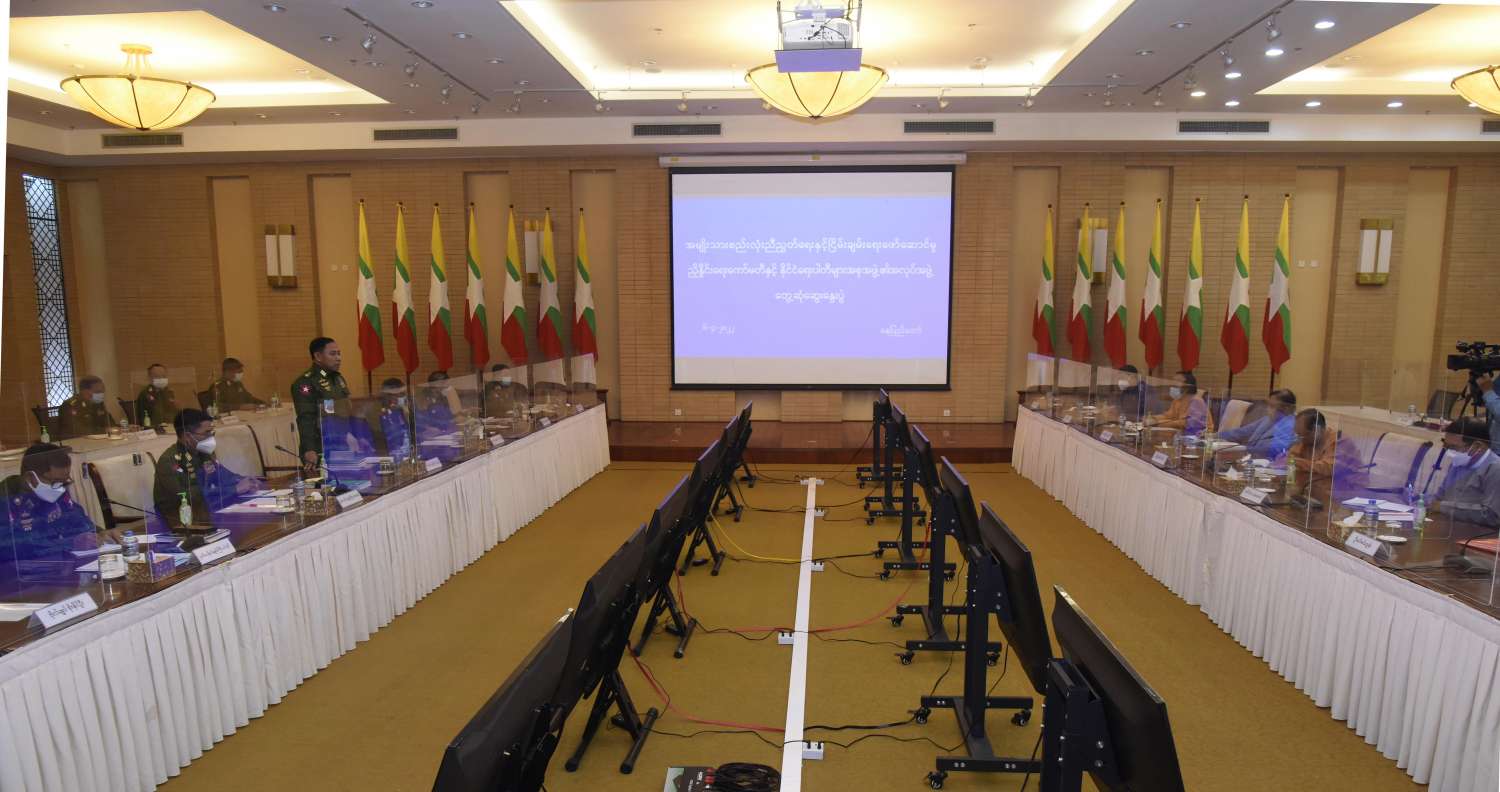 အမျိုးသားစည်းလုံးညီညွတ်ရေးနှင့် ငြိမ်းချမ်းရေးဖော်ဆောင်မှုညှိနှိုင်းရေးကော်မတီနှင့် နိုင်ငံရေးပါတီများအစုအဖွဲ့၏ အလုပ်အဖွဲ့တွေ့ဆုံ ဆွေးနွေးပွဲကို ယနေ့နံနက်ပိုင်းတွင် နေပြည်တော်ရှိ အမျိုးသားစည်းလုံးညီညွတ်ရေးနှင့် ငြိမ်းချမ်းရေးဖော်ဆောင်မှုဗဟိုဌာန အစည်းအဝေး ခန်းမ၌ ကျင်းပသည်။