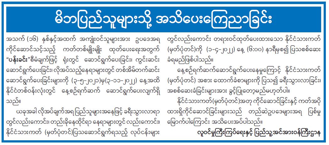 မိဘပြည်သူများသို့ အသိပေးကြေညာခြင်း