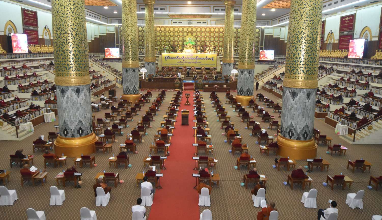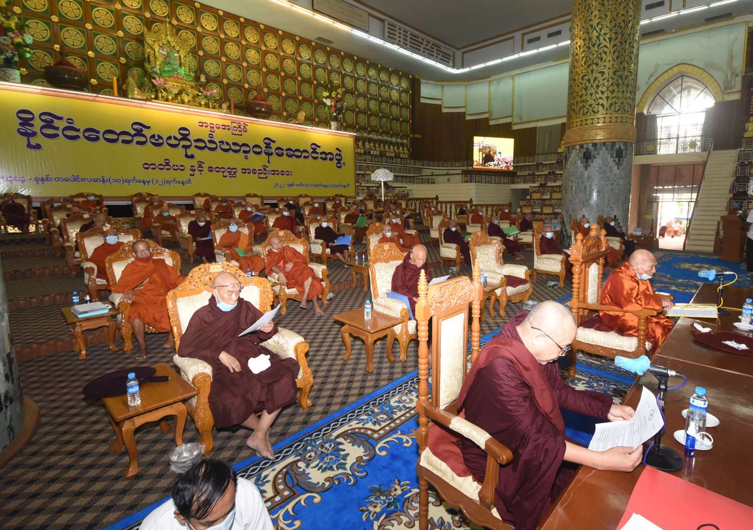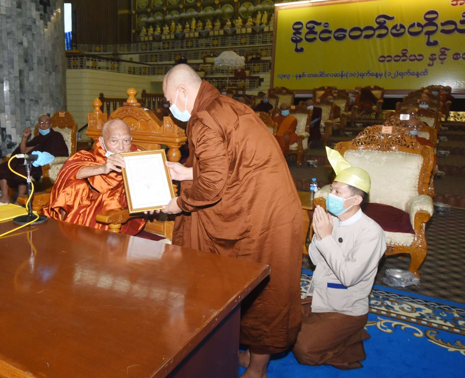 အစည်းအဝေးတွင် နိုင်ငံတော်ဗဟိုသံဃာ့ ဝန်ဆောင်အဖွဲ့ဥက္ကဋ္ဌ အဘိဓဇမဟာရဋ္ဌဂုရု၊ အဘိဓဇ အဂ္ဂမဟာသဒ္ဓမ္မဇောတိက ဒေါက်တာဘဒ္ဒန္တ ကုမာရာဘိဝံသ က သဘာပတိအဖြစ် ဆောင်ရွက်တော်မူပြီး တွဲဖက်အကျိုးတော်ဆောင် ဆရာတော် အဂ္ဂမဟာပဏ္ဍိတ ဘဒ္ဒန္တသီဟနာဒက အခမ်းအနားမှူး ဆရာတော်အဖြစ် ဆောင်ရွက် တော်မူသည်။