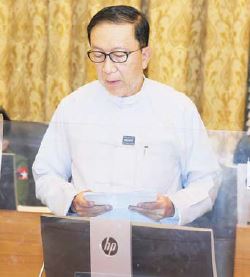 အမျိုးသားစီမံကိန်းရည်မှန်းချက်များ အပြည့်အဝအကောင်အထည်ဖော်ရာတွင် နိုင်ငံ၏ လူမှုစီးပွားအခြေအနေ များသာမက ပြည်ပသက်ရောက်မှု၊ ကုန်သွယ်ဘက် မိတ်ဆွေနိုင်ငံများ၏ စီးပွားရေးနှင့် နိုင်ငံရေးတည်ငြိမ်မှုတို့ကို ထည့်သွင်းစဉ်းစား ဆောင်ရွက်ရန်သတိပြုကြရန် လိုအပ်သကဲ့သို့ FDI ပိုမိုစီးဝင်စေရေး၊ ကုန်သွယ်မှု တိုးမြှင့်စေရေးအပါအဝင် မိတ်ဘက်နိုင်ငံများ နှင့် ဆက်ဆံမှုပြုရာတွင် ဥပဒေ၊ စည်းမျည်း၊ စည်းကမ်းခိုင်မာ အားကောင်းစေရေးနှင့် လုံခြုံတည်ငြိမ်ရေးသည်လည်း အရေးပါသည့် အဓိကအကျုံးဝင်သော အချက်ဖြစ် သည်ကို ဂရုပြုဆောင်ရွက်ကြရန် လိုအပ်ကြောင်း၊ အထက်ပါအချက်များ ဆောင်ရွက်နိုင်ရေး ယနေ့အချိန် အတွက် အထူးအရေးကြီးသည့် အချက်သည် ကမ္ဘာလုံးဆိုင်ရာ ကိုဗစ်-၁၉ ကူးစက်မြန် ကပ်ရောဂါ ဘေးဆိုးကြီး၏ ရိုက်ခတ်မှုအန္တရာယ်မှ လျင်မြန်စွာလွန်မြောက်စေရန်၊ ကိုဗစ်ကပ်ရောဂါ နှင့်အတူ ယှဉ်တွဲ လုပ်ငန်းဆောင် ရွက်နိုင်စေရန်အတွက်လည်း နိုင်ငံတော်အစိုးရ အနေဖြင့် ကိုဗစ်-၁၉ ကပ်ရောဂါ ကာကွယ်ဆေးထိုးနှံခြင်းလုပ်ငန်းကို အရှိန်အဟုန်ဖြင့် ဆောင်ရွက် လျက်ရှိရာ ပြည်တွင်း၌ Ready to Fill စနစ်ဖြင့် စတင်ထုတ်လုပ်နိုင် ပြီဖြစ်သကဲ့သို့ ၂၀၂၂ ခုနှစ်ဧပြီလကုန်အပြီး တစ်နိုင်ငံလုံး ရာနှုန်းပြည့် ကာကွယ်ဆေး ထိုးနှံပြီးစီးရေးကိုလည်း ရည်မှန်းချက်ထားလျက် အရှိန်အဟုန်ဖြင့် ဆောင်ရွက်လျက်ရှိရာ ဝန်ကြီးဌာနများ၊ တိုင်းဒေသကြီးနှင့် ပြည်နယ်အစိုးရအဖွဲ့များကလည်း ရာနှုန်းပြည့် ကာကွယ်ဆေးထိုးနှံ ပြီးစီးရေး ဝိုင်းဝန်းပူးပေါင်းဆောင်ရွက်ပေးကြရန် တိုက်တွန်းပြောကြားသည်။