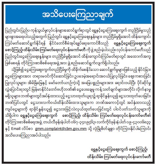 ဝန်ကြီးဌာန ကြေညာချက်များ