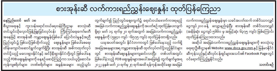 စားအုန်းဆီ လက်ကားရည်ညွှန်းစျေးနှုန်း ထုတ်ပြန်ကြေညာ