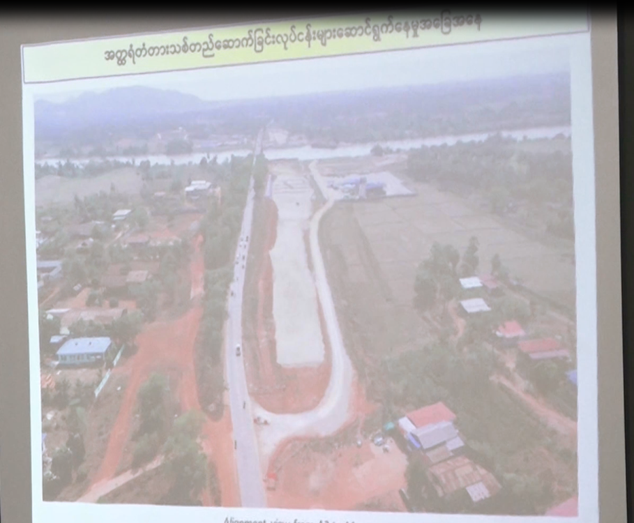 စီမံကိန်းရှင်းလင်းဆောင်တွင် တံတားဦးစီးဌာန အင်ဂျင်နီယာချုပ် (မြို့ပြ) ဦးကျော်စွာထွန်းက စီမံကိန်းဆိုင်ရာ ဆောင်ရွက်မှု များကို ရှင်းလင်းတင်ပြရာ နိုင်ငံတော်စီမံအုပ်ချုပ်ရေးကောင်စီအဖွဲ့ဝင်များက သိရှိလိုသည့် အချက်များကို မေးမြန်းဆွေးနွေးသည်။