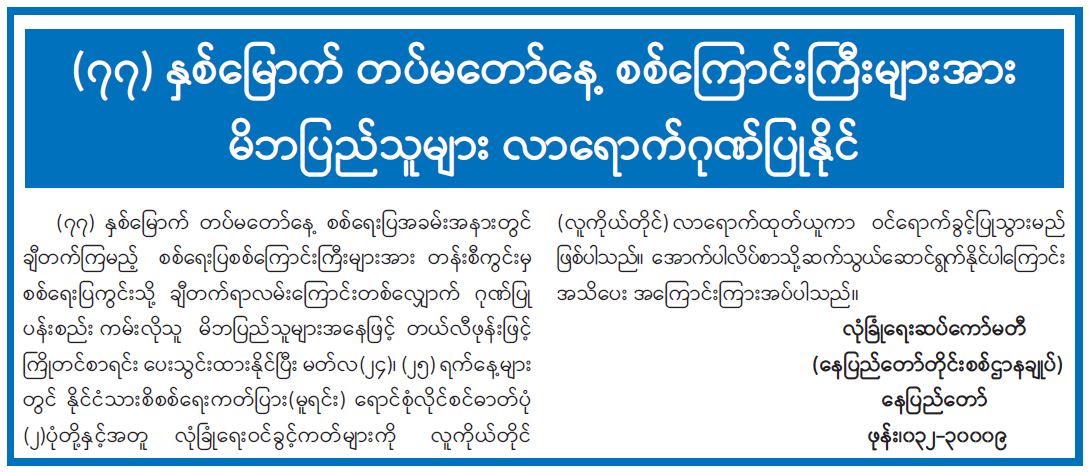 သတင်းအေဂျင်စီလုပ်ငန်း ပိတ်သိမ်းကြောင်း အသိပေးကြေညာချက်