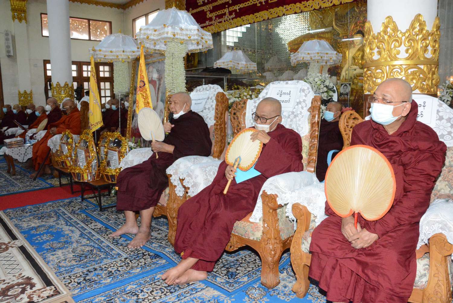 ယင်းနောက်ရန်ကုန်တိုင်းဒေသကြီးမှော်ဘီမြို့ သာသနာ့ဝန်ဆောင်ကျောင်းတိုက် ပဓာနနာယက ရန်ကုန်တိုင်းဒေသကြီး သံဃနာယကအဖွဲ့(ရွှေကျင်)အကျိုးတော်ဆောင်၊ မဟာဂန္ထဝါစကပဏ္ဍိတ ဘဒ္ဒန္တစန္ဒသိရီက ဝိဇ္ဇောတာရုံဆရာတော်ဘုရားကြီး၏ ထေရုပ္ပတ္တိကထာကို ဖတ်ကြားလျှောက်ထား သည်။