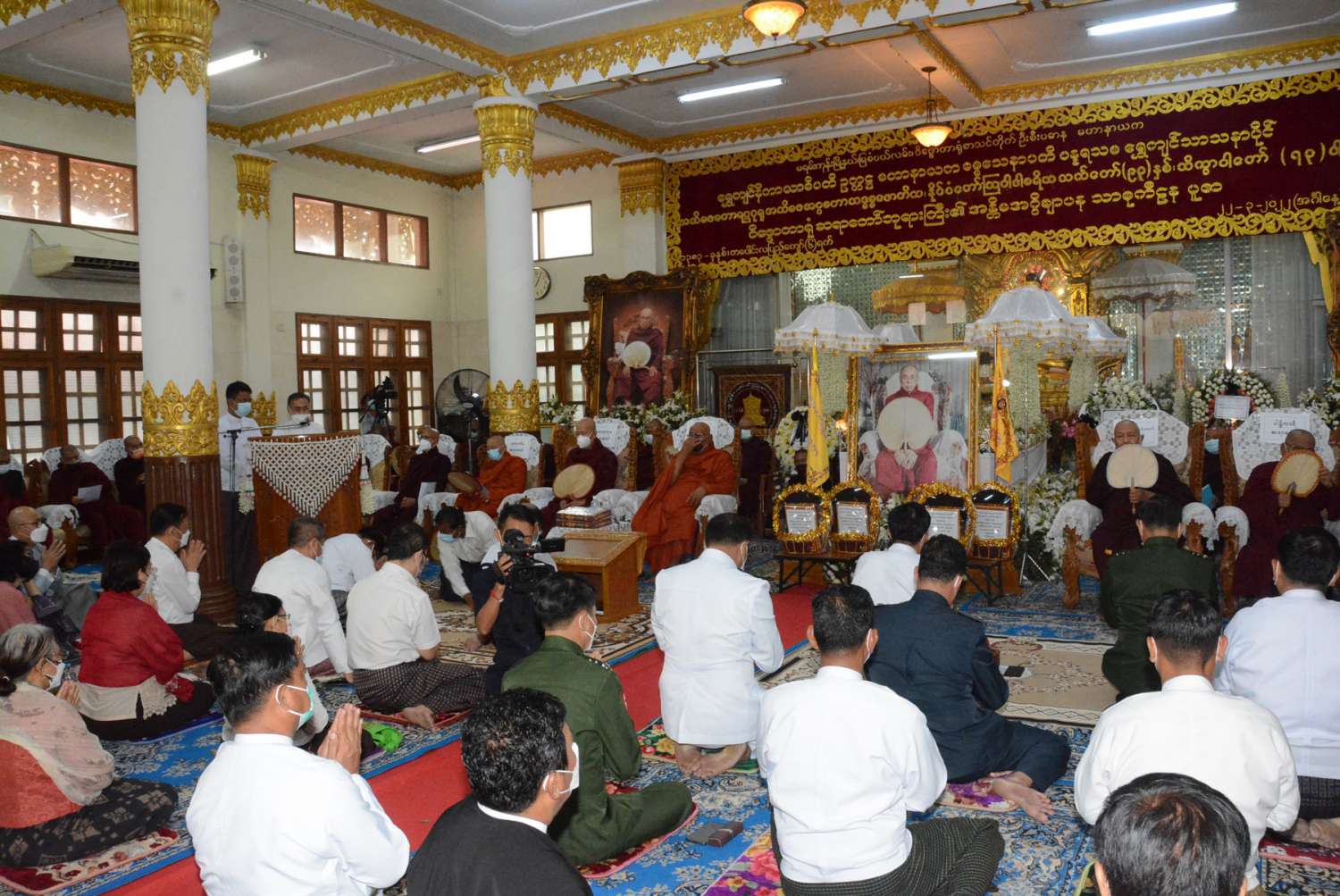 ထို့နောက် သာသနာရေးနှင့်ယဉ်ကျေးမှုဝန်ကြီးဌာနမှ ဆက်ကပ်အပ်သော ဝမ်းနည်းကြောင်း သဝဏ်လွှာကို သာသနာရေးနှင့်ယဉ်ကျေးမှုဝန်ကြီးဌာန ပြည်ထောင်စုဝန်ကြီး ဦးကိုကိုက ဖတ်ကြား လျှောက်ထားကြသည်။