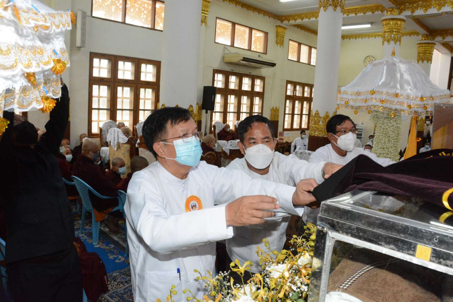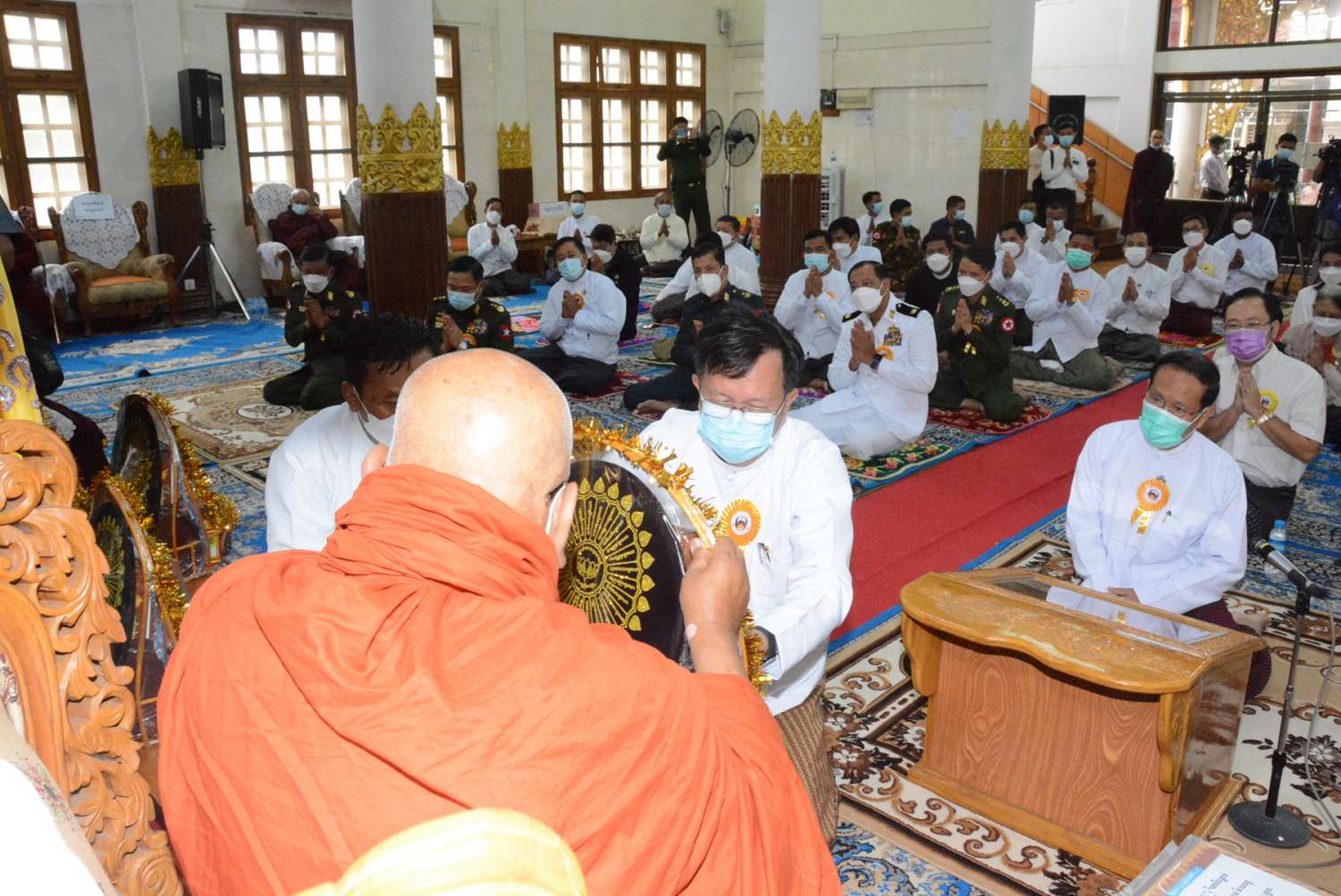 ဆက်လက်၍ ဆရာတော်သံဃာတော်များအား နိုင်ငံတော်စီမံအုပ်ချုပ်ရေးကောင်စီ အတွင်းရေးမှူး ဒုတိယဗိုလ်ချုပ်ကြီး အောင်လင်းဒွေးနှင့်အဖွဲ့က လှူဖွယ်ဝတ္ထုပစ္စည်းများ ဆက်ကပ် လှူဒါန်းကြသည်။