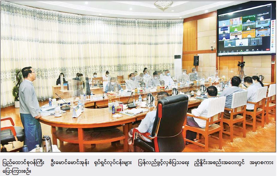 ရုပ်ရှင်လုပ်ငန်းများ ပြန်လည်ဖွင့်လှစ်ပြသရေး ညှိနှိုင်းအစည်းအဝေးကို ယနေ့နံနက် ၁၀ နာရီတွင် နေပြည်တော်ရှိ ပြန်ကြားရေးဝန်ကြီးဌာန အစည်းအဝေးခန်းမ၌ ဗီဒီယိုကွန်ဖရင့်စနစ်ဖြင့် ကျင်းပသည်။