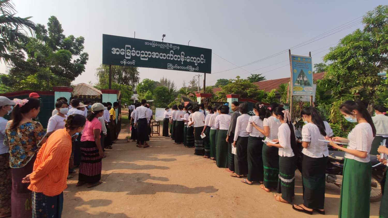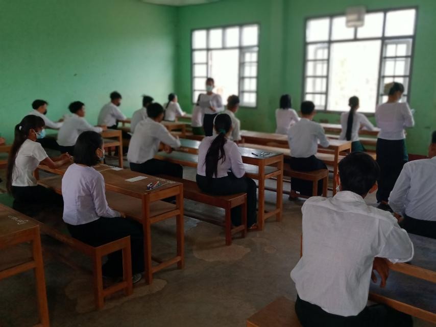 စာမေးပွဲ ဖြေဆိုခြင်းမပြုမီ ကိုဗစ်-၁၉ ရောဂါဆိုင်ရာ စည်းမျဉ်း/စည်းကမ်းများနှင့်အညီ Mask များ တပ်ဆင်လာစေခြင်း၊ အပူချိန်တိုင်းတာခြင်း၊ စာမေးပွဲ ဖြေဆိုခွင့်ကတ်များ မှန်/မမှန် စစ်ဆေးခြင်း များကို ဆရာ၊ ဆရာမများက စနစ်တကျ စစ်ဆေးခြင်းများကို ဆောင်ရွက်ကြသည်။