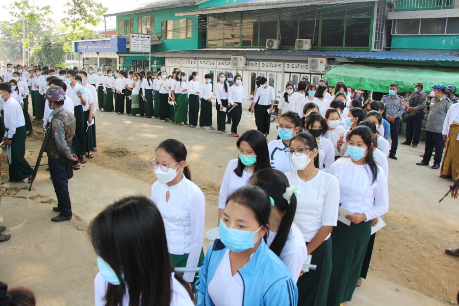 ၂၀၂၁-၂၀၂၂ ပညာသင်နှစ် တက္ကသိုလ်ဝင်စာမေးပွဲကို ယနေ့တွင် စတင်ကျင်းပလျက်ရှိရာ တိုင်းဒေသကြီးနှင့် ပြည်နယ်အသီးသီးရှိ အခြေခံပညာ အထက်တန်းကျောင်းများ၌ ကျောင်းသား၊ ကျောင်းသူများ ဝင်ရောက်ဖြေဆိုလျက်ရှိသည်။