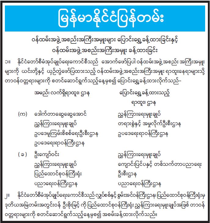 ဝန်ထမ်းအဖွဲ့အစည်းအကြီးအမှူးများ ပြောင်းရွှေ့ခန့်ထားခြင်းနှင့် ဝန်ထမ်းအဖွဲ့အစည်း အကြီးအမှူး ခန့်ထားခြင်း 04/01/2022