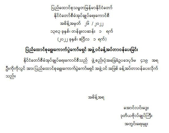 ပြည်ထောင်စုရွေးကောက်ပွဲကော်မရှင် အဖွဲ့ဝင်ခန့်အပ်တာဝန်ပေးခြင်း