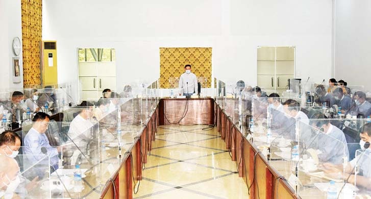 မြန်မာ့ကျောက်မျက်ရတနာပြပွဲ ဗဟိုကော်မတီ အစည်းအဝေးကို ယနေ့နံနက် ၁၀ နာရီတွင် နေပြည်တော်ရှိ မဏိရတနာ ကျောက်စိမ်းခန်းမ၌ ကျင်းပရာ မြန်မာ့ကျောက်မျက်ရတနာပြပွဲ ဗဟိုကော်မတီနာယက သယံဇာတနှင့် သဘာဝပတ်ဝန်းကျင် ထိန်းသိမ်းရေး ဝန်ကြီးဌာန ပြည်ထောင်စုဝန်ကြီး ဦးခင်မောင်ရီ တက်ရောက်အမှာစကား ပြောကြားသည်။